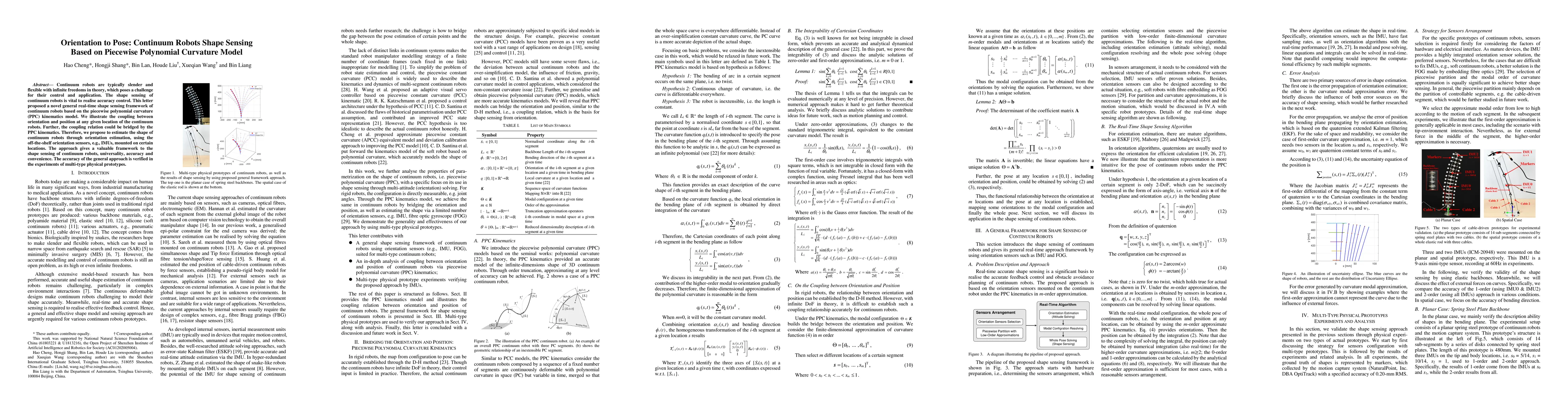 This paper presents a novel real-time shape sensing framework for continuum robots using a piecewise polynomial curvature (PPC) kinematics model. It leverages orientation sensors like IMUs to estimate the shape of the flexible robots, bridging the coupling between orientation and position, thereby offering a universal, accurate, and convenient method for shape sensing. Experimental validation demonstrates the approach's effectiveness across various physical prototypes.