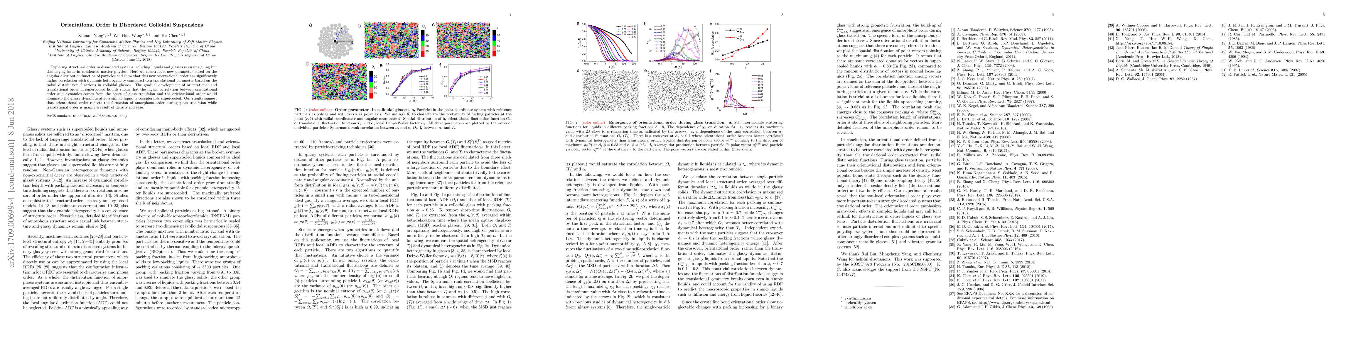 The research constructs a new parameter based on the angular distribution function of particles to quantify orientational order in colloidal glasses, comparing it with a translational parameter derived from radial distribution functions.