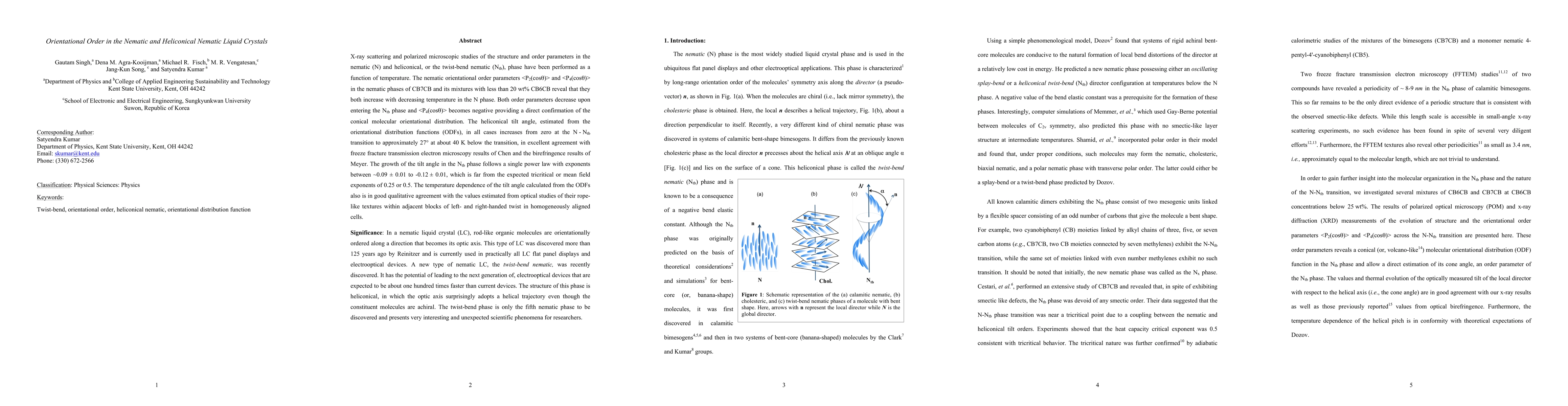 parameters in the nematic (N) and heliconical, or the twist-bend nematic (Ntb),