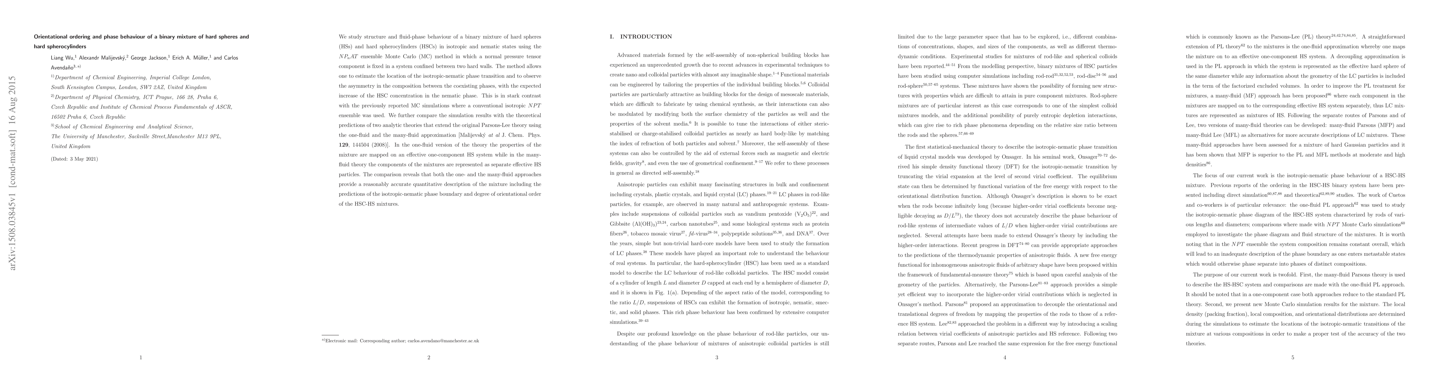 We study structure and fluid-phase behaviour of a binary mixture of hard spheres (HSs) and hard spherocylinders (HSCs) in isotropic and nematic states using the $NP_nAT$ ensemble Monte Carlo (MC) method in which a normal pressure tensor component is fixed in a system confined between two hard walls. The method allows one to estimate the location of the isotropic-nematic phase transition and to observe the asymmetry in the composition between the coexisting phases, with the expected increase of the HSC concentration in the nematic phase. This is in stark contrast with the previously reported MC simulations where a conventional isotropic $NPT$ ensemble was used. We further compare the simulation results with the theoretical predictions of two analytic theories that extend the original Parsons-Lee theory using the one-fluid and the many-fluid approximation [Malijevsk\'y {\it at al} J. Chem. Phys. \textbf{129}, 144504 (2008)]. In the one-fluid version of the theory the properties of the mixture are mapped on an effective one-component HS system while in the many-fluid theory the components of the mixtures are represented as separate effective HS particles. The comparison reveals that both the one- and the many-fluid approaches provide a reasonably accurate quantitative description of the mixture including the predictions of the isotropic-nematic phase boundary and degree of orientational order of the HSC-HS mixtures.