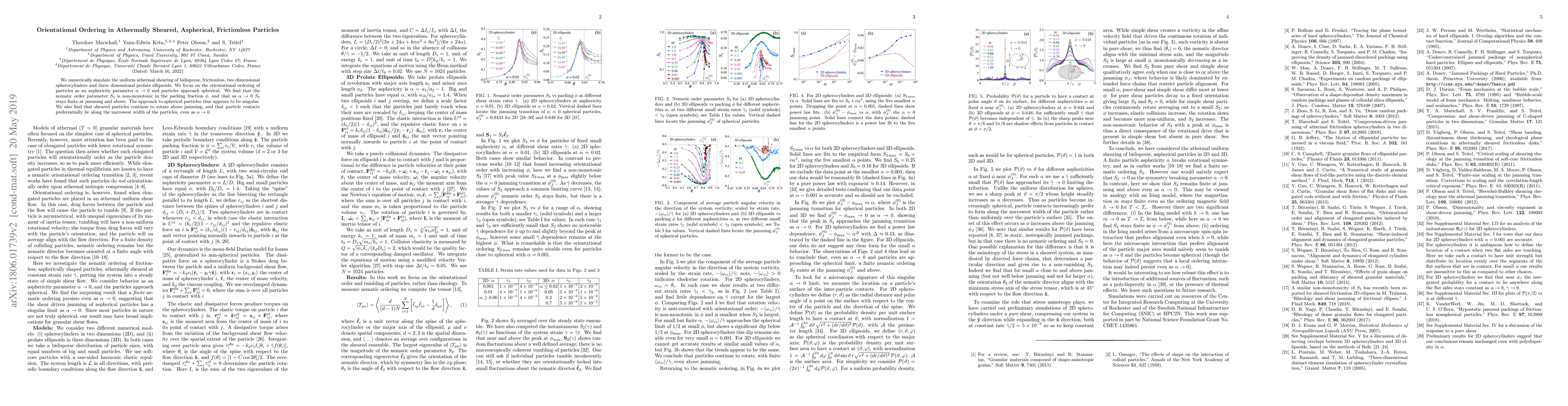 The paper presents a detailed numerical study of orientational ordering in sheared, aspherical, frictionless particles, providing insights into how particle shape influences collective behavior in sheared systems.