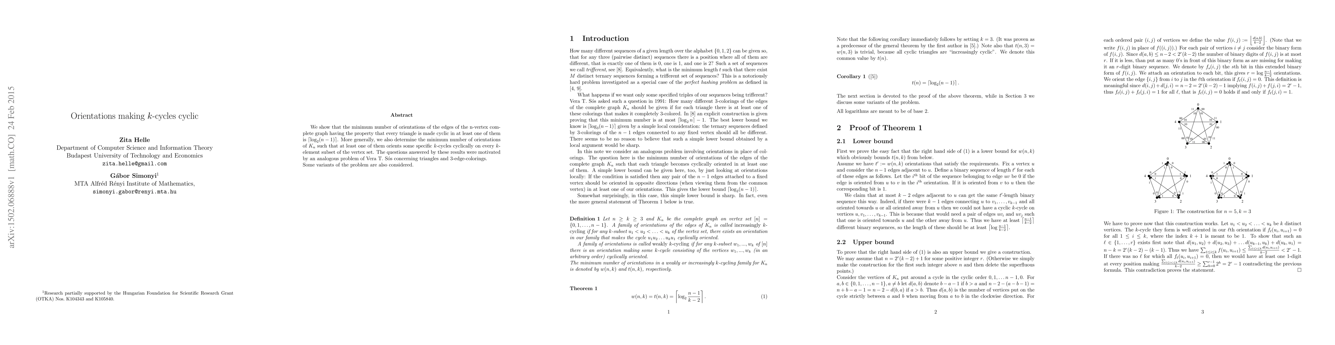 This paper determines the minimum number of edge orientations required in the complete graph $K_n$ to ensure that every triangle is cyclic in at least one orientation, which is $\lceil\log_2(n-1)\rceil$. It further extends this result to $k$-cycles for any $k$, addressing a problem inspired by Vera T. Sós's work on triangles and edge-colorings.