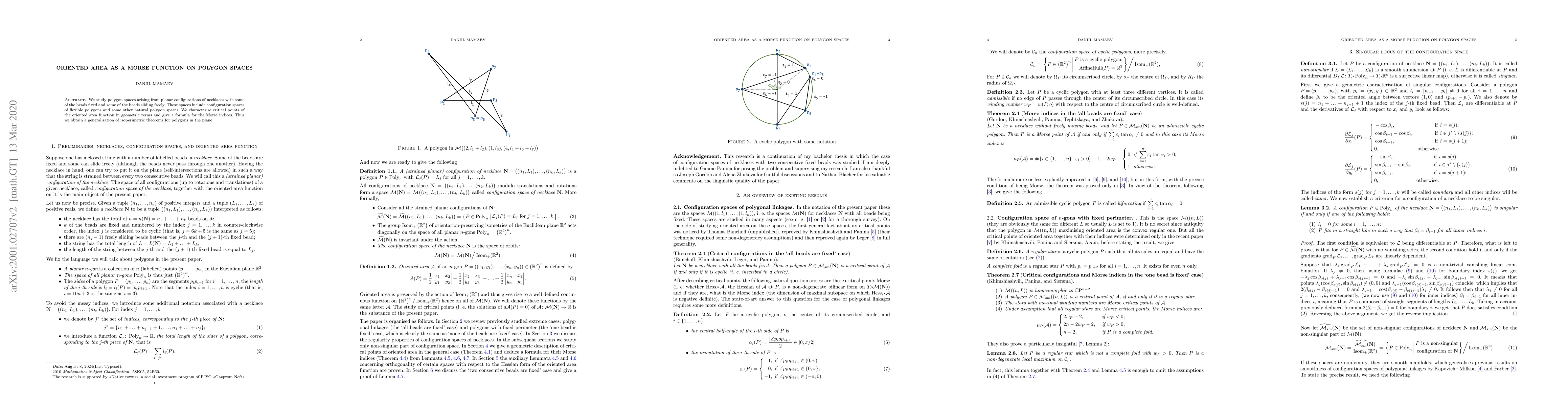 We study polygon spaces arising from planar configurations of necklaces with some of the beads fixed and some of the beads sliding freely. These spaces include configuration spaces of flexible polygons and some other natural polygon spaces. We characterise critical points of the oriented area function in geometric terms and give a formula for the Morse indices. Thus we obtain a generalisation of isoperimetric theorems for polygons in the plane.