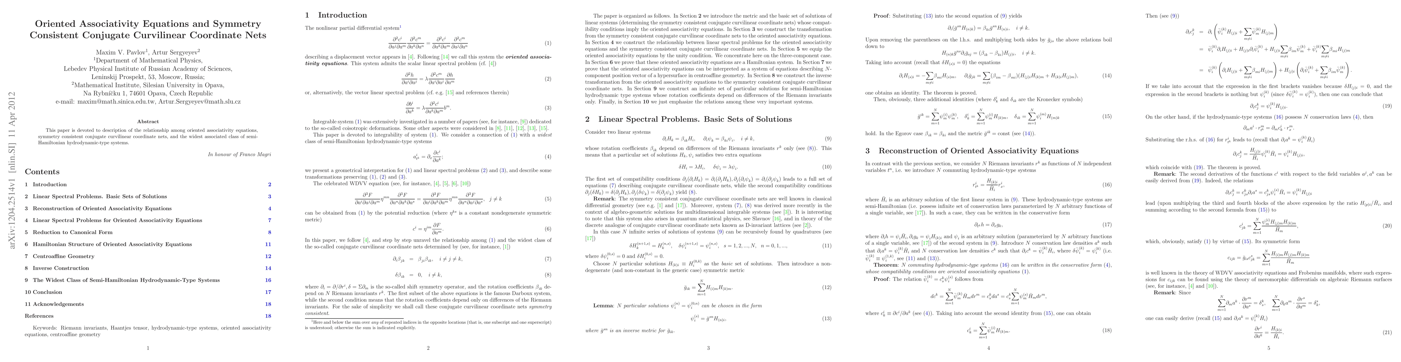 This paper is devoted to description of the relationship among oriented associativity equations, symmetry consistent conjugate curvilinear coordinate nets, and the widest associated class of semi- Hamiltonian hydrodynamic-type systems.