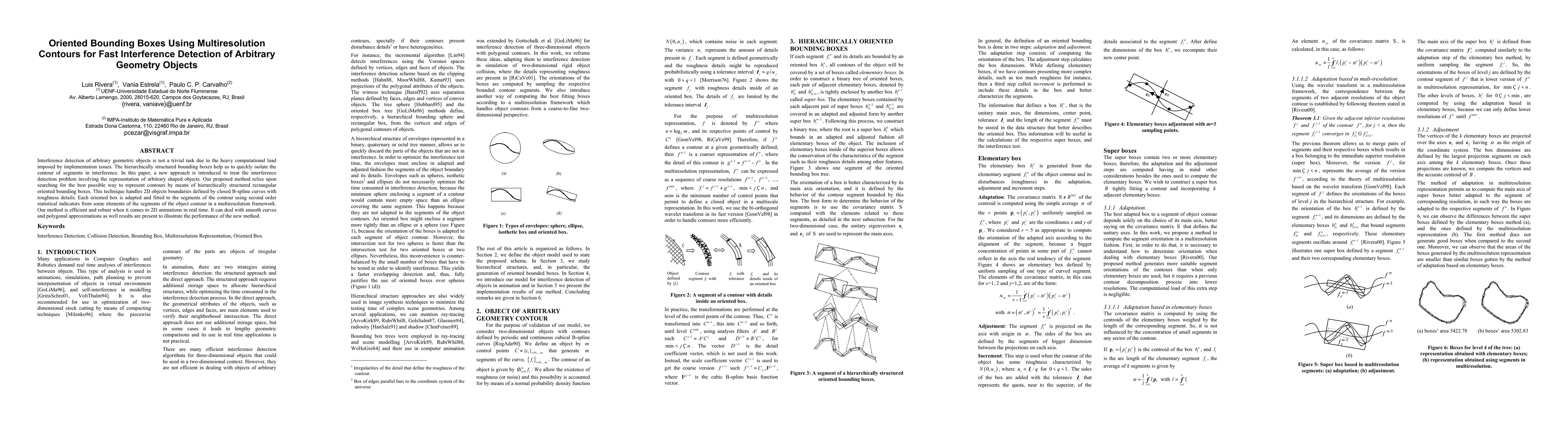 Interference detection of arbitrary geometric objects is not a trivial task due to the heavy computational load imposed by implementation issues. The hierarchically structured bounding boxes help us to quickly isolate the contour of segments in interference. In this paper, a new approach is introduced to treat the interference detection problem involving the representation of arbitrary shaped objects. Our proposed method relies upon searching for the best possible way to represent contours by means of hierarchically structured rectangular oriented bounding boxes. This technique handles 2D objects boundaries defined by closed B-spline curves with roughness details. Each oriented box is adapted and fitted to the segments of the contour using second order statistical indicators from some elements of the segments of the object contour in a multiresolution framework. Our method is efficient and robust when it comes to 2D animations in real time. It can deal with smooth curves and polygonal approximations as well results are present to illustrate the performance of the new method.