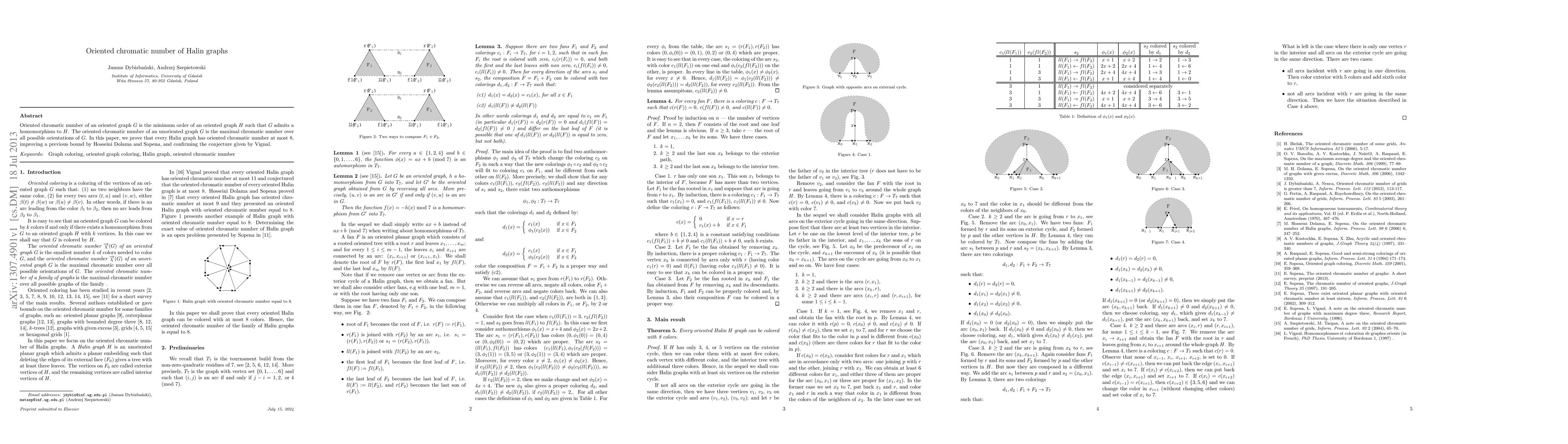 This paper establishes that the oriented chromatic number for all Halin graphs is at most 8, enhancing a previous bound and verifying a conjecture by Vignal. This result refines our understanding of the relationship between graph orientations and homomorphisms.
