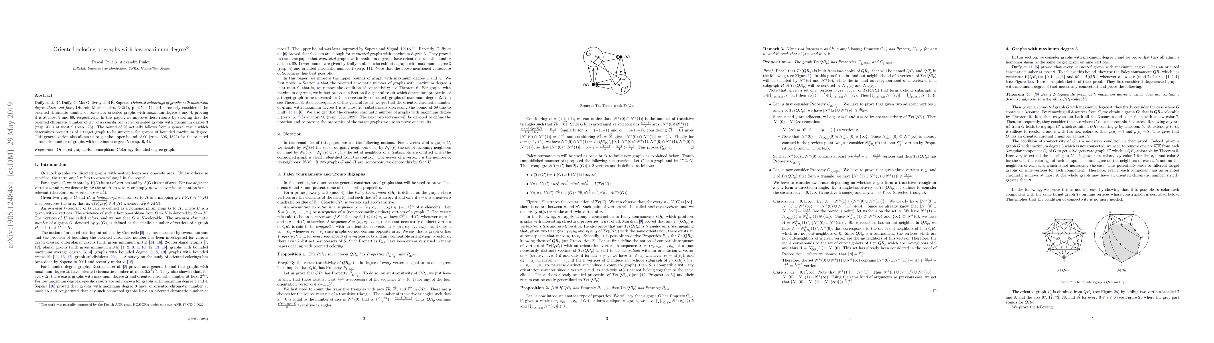 The study improves previous results on oriented chromatic numbers for graphs with maximum degree 3 and 4, establishing bounds of 9 and 26, respectively. A generalization also allows for upper bounds of 90, 306, and 1322 for graphs with higher maximum degrees.