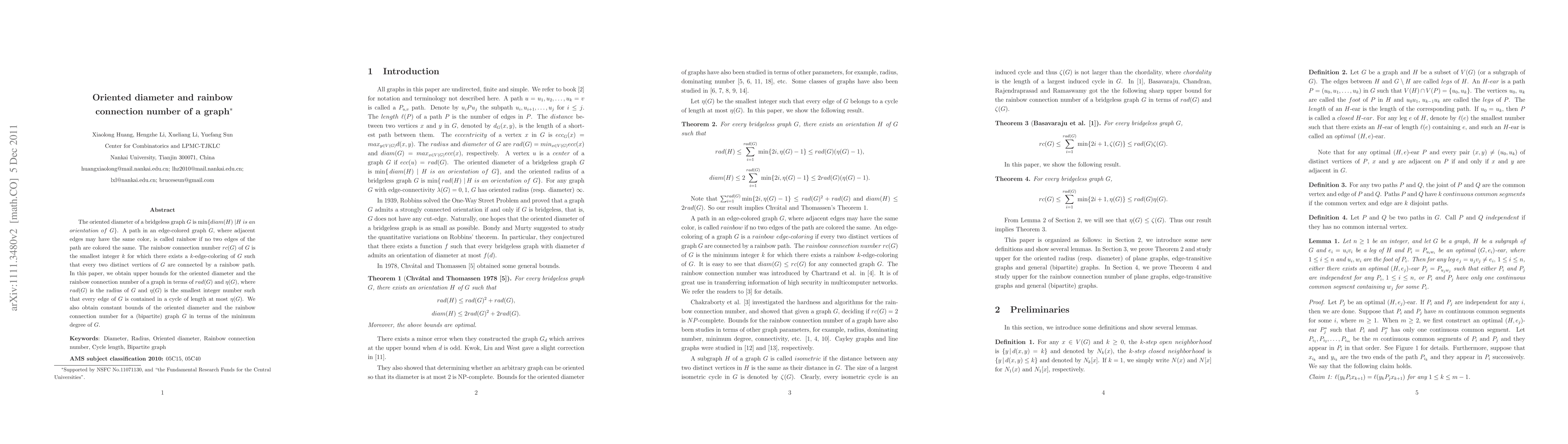 This paper investigates the oriented diameter and rainbow connection number of bridgeless graphs, establishing upper bounds for these metrics in terms of the graph's radius and a cycle length parameter. It also provides constant bounds for these metrics based on the graph's minimum degree.
