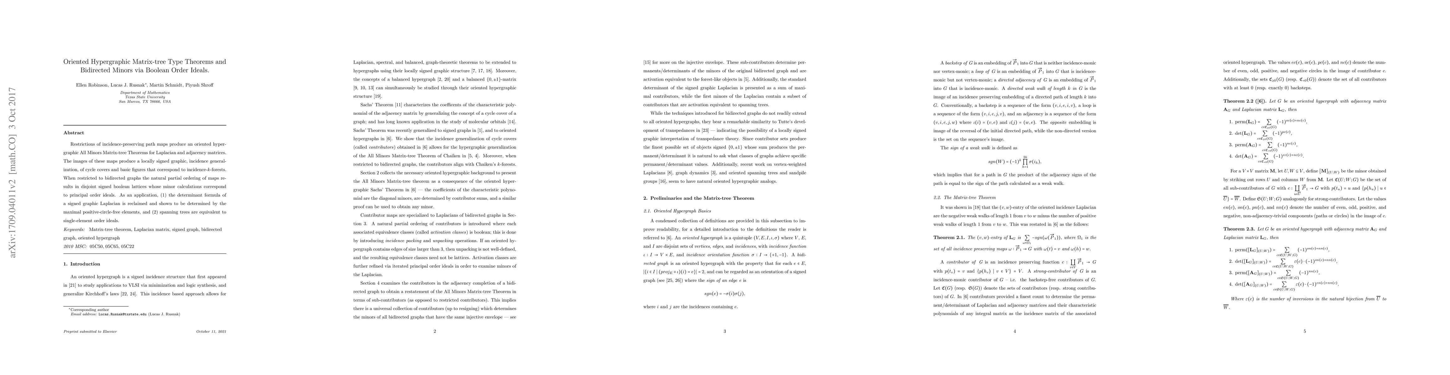 Restrictions of incidence-preserving path maps produce an oriented hypergraphic All Minors Matrix-tree Theorems for Laplacian and adjacency matrices. The images of these maps produce a locally signed graphic, incidence generalization, of cycle covers and basic figures that correspond to incidence-k-forests. When restricted to bidirected graphs the natural partial ordering of maps results in disjoint signed boolean lattices whose minor calculations correspond to principal order ideals. As an application, (1) the determinant formula of a signed graphic Laplacian is reclaimed and shown to be determined by the maximal positive-circle-free elements, and (2) spanning trees are equivalent to single-element order ideals.