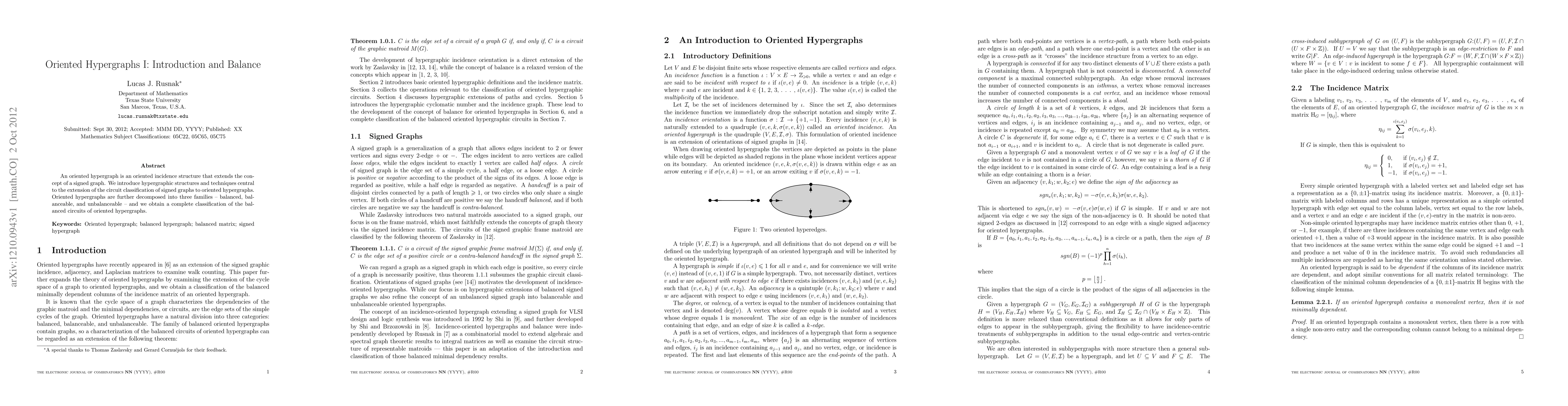 This paper introduces oriented hypergraphs, a mathematical structure that extends signed graphs, and classifies their balanced circuits into three families: balanceable, unbalanceable, and a new concept called balanceable.