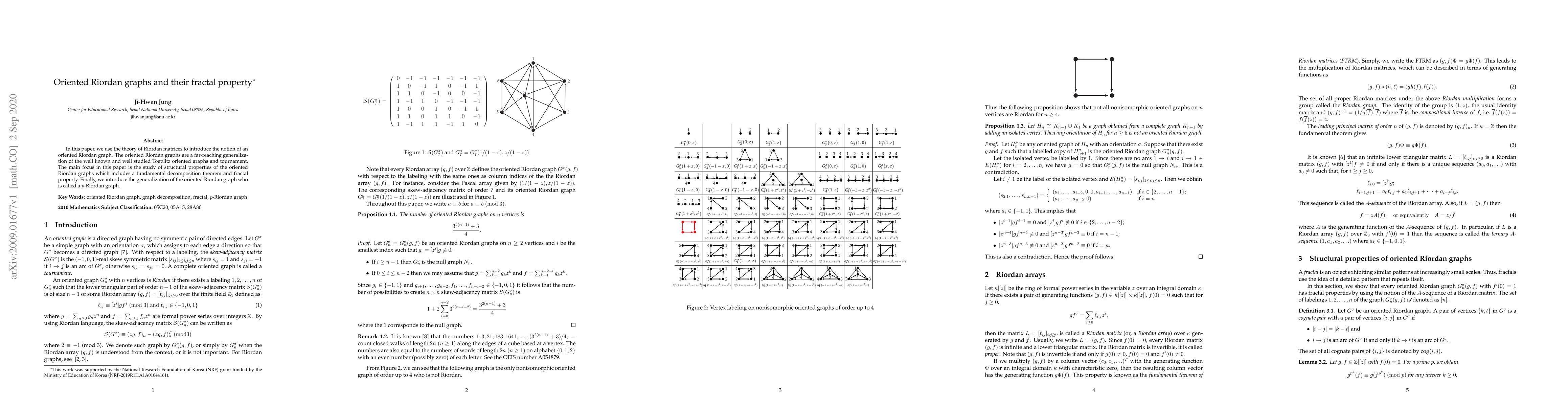 This paper introduces oriented Riordan graphs, a generalization of Toeplitz oriented graphs, and studies their structural properties, including a decomposition theorem and a fractal property. The paper also extends the concept to $p$-Riordan graphs.
