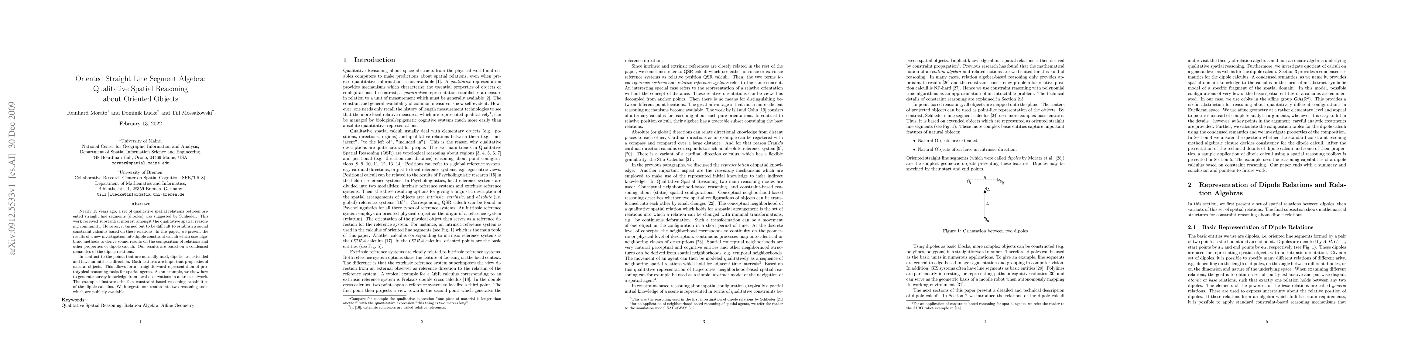 This paper investigates the algebraic methods for establishing a sound constraint calculus for qualitative spatial reasoning using oriented straight line segments, termed dipoles, which have intrinsic directionality. The authors demonstrate the effectiveness of dipole calculus through an example of generating survey knowledge in a street network, showcasing its constraint-based reasoning capabilities.