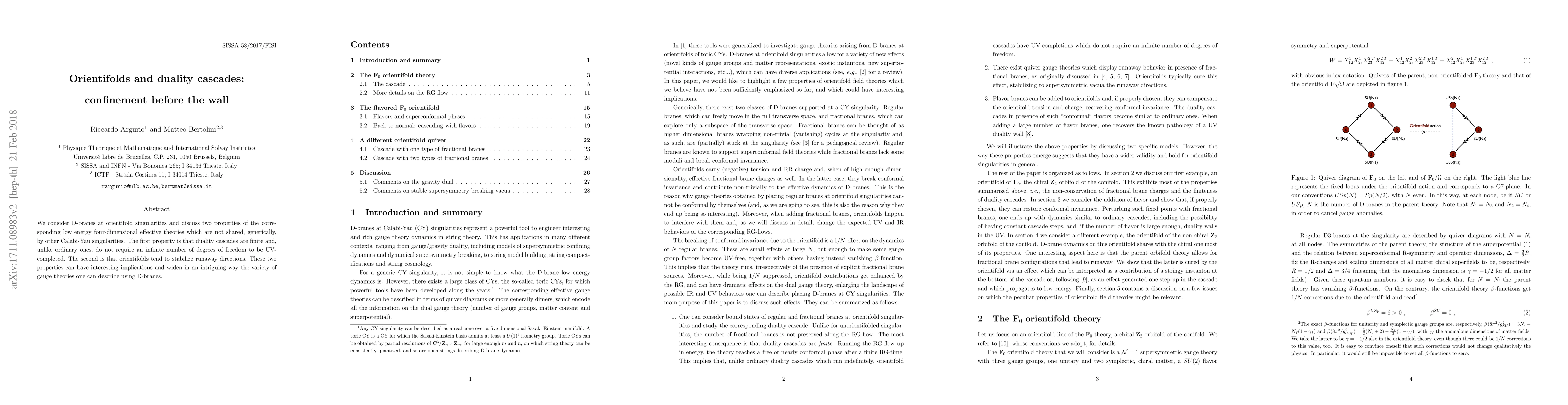 The paper explores D-branes in orientifold singularities, highlighting that duality cascades are finite and orientifolds stabilize runaway directions, providing new insights into the variety of gauge theories described by D-branes.
