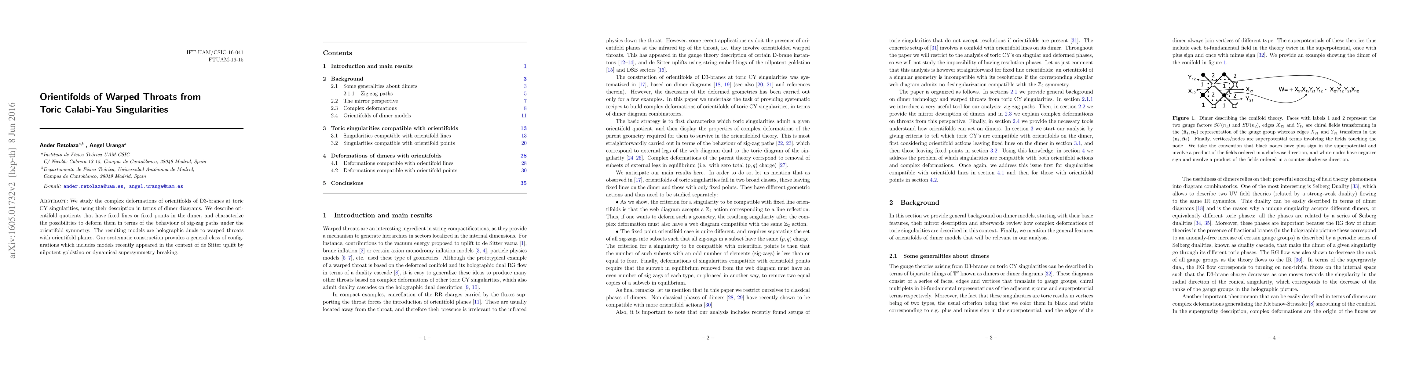 This paper explores complex deformations of orientifolds of D3-branes at toric Calabi-Yau singularities, using dimer diagrams to describe fixed lines or points. It provides a systematic construction of holographic duals to warped throats with orientifold planes, relevant for de Sitter uplift and supersymmetry breaking.