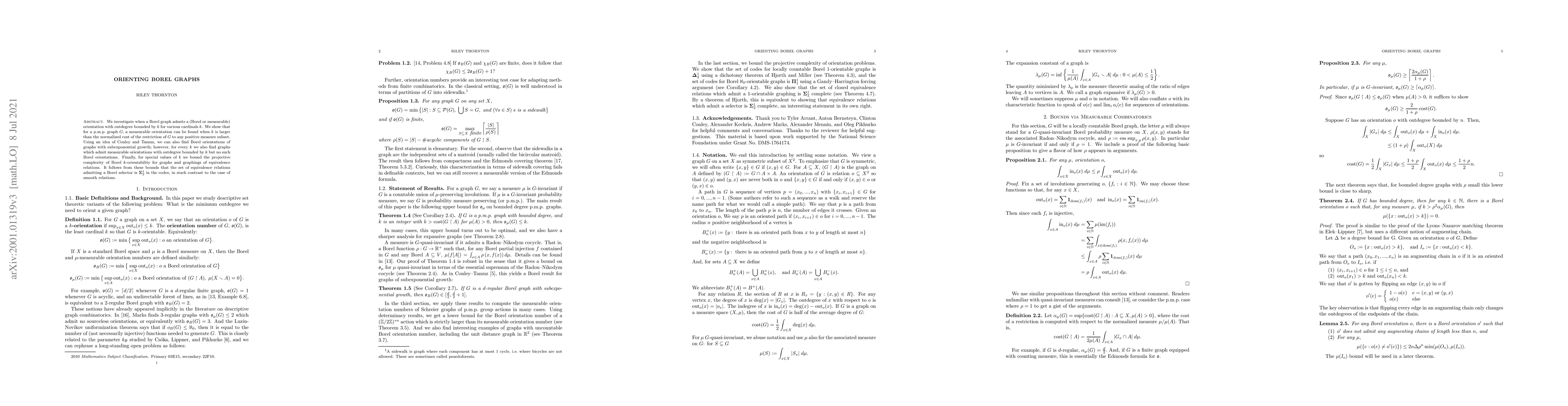 This paper explores conditions under which Borel graphs can be oriented measurably or Borelly with bounded outdegree. It demonstrates that measurable orientations exist for p.m.p. graphs when the outdegree exceeds a certain normalized cost. It also discusses Borel orientations for graphs with subexponential growth and contrasts Borel and measurable orientability, concluding with bounds on projective complexity for specific cases.