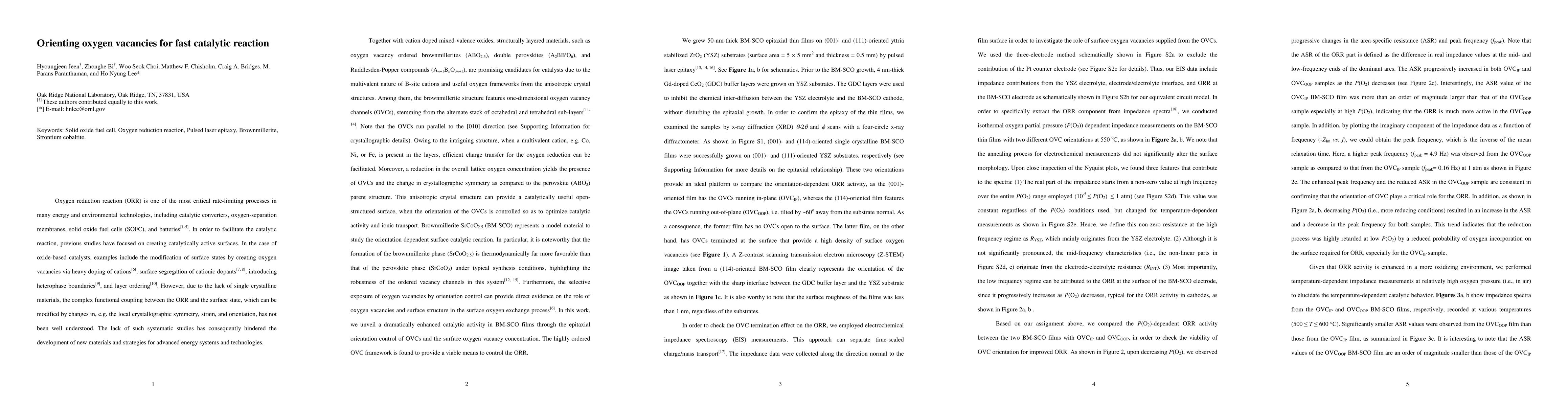 Catalysis is indispensable to chemical processes and relevant to many aspects of modern life. Owing to the intriguing electronic structures and good ionic properties, multivalent transition metal oxides have attracted attention as key catalysts for various energy and environmental applications. Here, we demonstrate that brownmillerite strontium cobaltite (SrCoO2.5) can be a good cathode material for sold oxide fuel cells and rechargeable batteries due to the open oxygen frameworks. When the orientation of oxygen vacancy channels (OVCs) is properly controlled, one can drastically increase the surface oxygen exchange rate approximately up to two orders of magnitude. The improved oxygen reduction kinetics is attributed to a substantial decrease in the thermal activation energy. Importantly, the strong enhancement of crystallographic orientation-dependent oxygen reduction reaction required the creation of neither structural disorders nor chemical doping. Thus, our epitaxial approach can pave a novel pathway to providing precise interpretation of oxygen reduction reactions and to developing oxide-based energy materials.