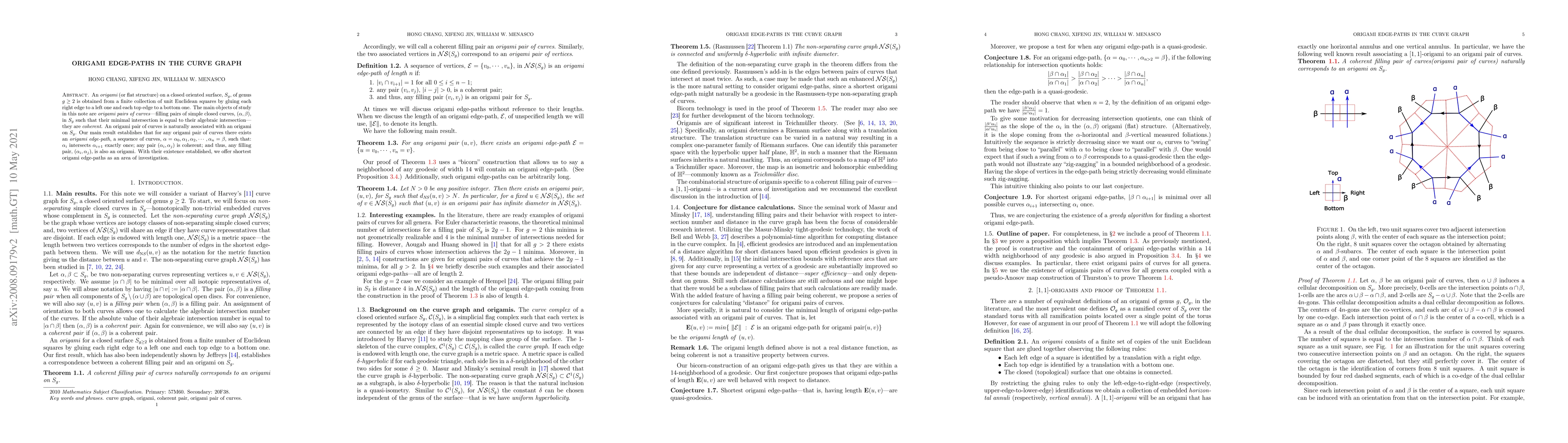 An "origami" (or flat structure) on a closed oriented surface, $S_g$, of genus $g \geq 2$ is obtained from a finite collection of unit Euclidean squares by gluing each right edge to a left one and each top edge to a bottom one. The main objects of study in this note are "origami pairs of curves" -- filling pairs of simple closed curves, $ (\alpha,\beta)$, in $S_g$ such that their minimal intersection is equal to their algebraic intersection -- they are "coherent". An origami pair of curves is naturally associated with an origami on $S_g$. Our main result establishes that for any origami pair of curves there exists an "origami edge-path", a sequence of curves, $\alpha =\alpha_0, \alpha_1, \alpha_2, \cdots, \alpha_n = \beta $, such that: $\alpha_i$ intersects $\alpha_{i+1}$ at exactly once; any pair $(\alpha_i, \alpha_j)$ is coherent; and thus, any filling pair, $(\alpha_i, \alpha_j)$, is also an origami. With their existence established, we offer shortest origami edge-paths as an area of investigation.