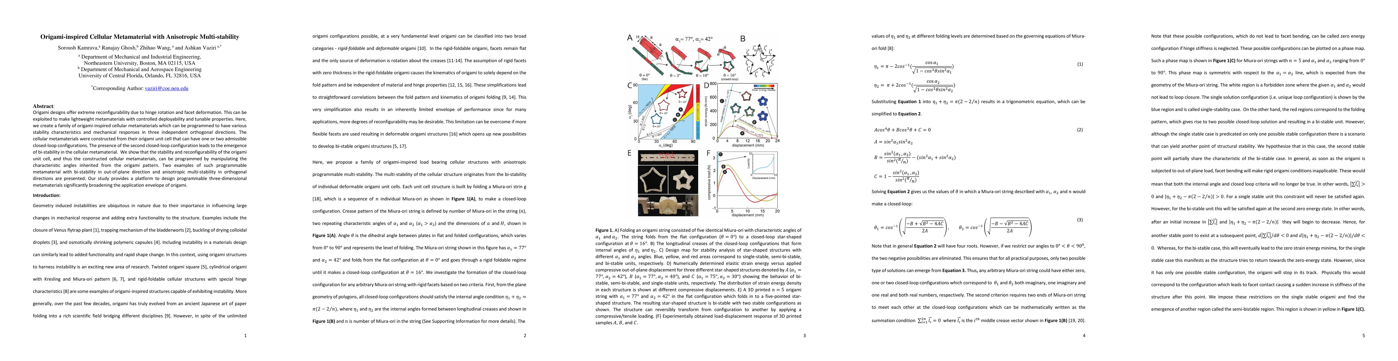 This paper develops origami-inspired cellular metamaterials with tunable anisotropic multi-stability, enabling programmable mechanical responses in three orthogonal directions through manipulation of origami unit cell angles. The study demonstrates two examples showcasing bi-stability and anisotropic multi-stability, expanding the potential applications of origami-based designs.
