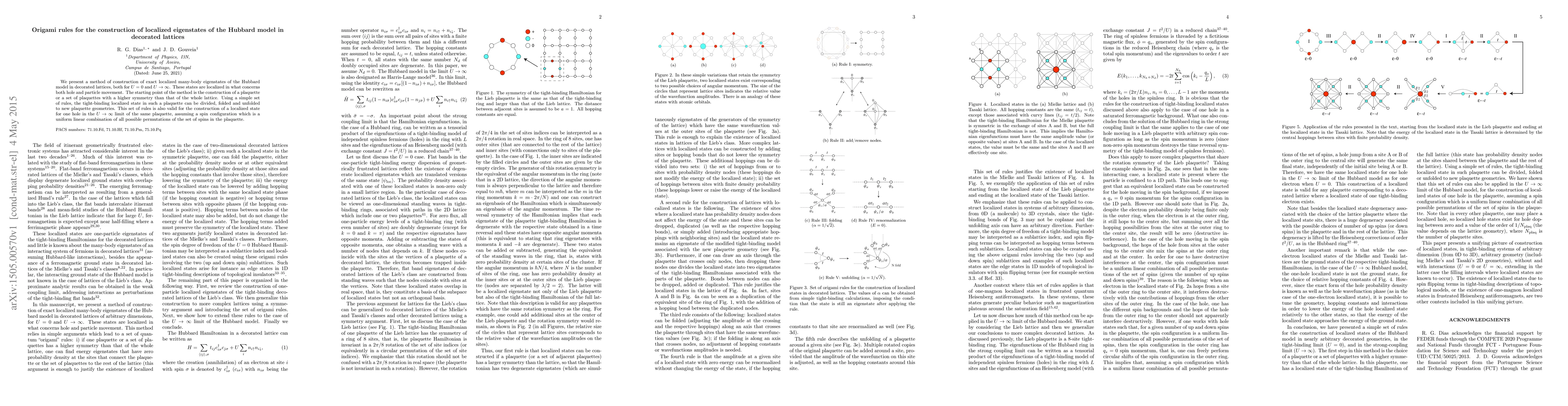 This paper outlines a method to construct exact localized eigenstates of the Hubbard model in decorated lattices, applicable for both $U=0$ and $U\rightarrow\infty$. The approach involves folding and unfolding a higher-symmetry plaquette to create localized states, valid for both particle and hole movements.