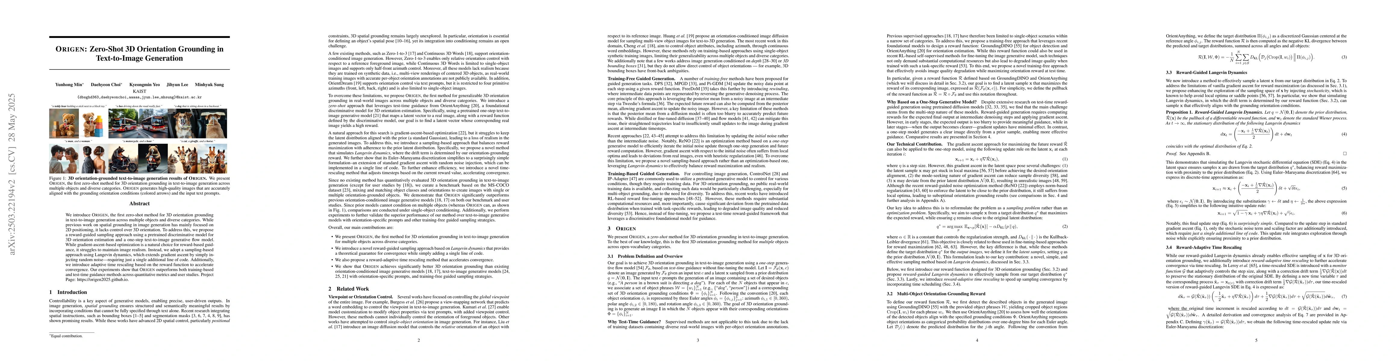 The paper introduces ORIGEN, a zero-shot method for 3D orientation grounding in text-to-image generation using a reward-guided sampling approach with Langevin dynamics and adaptive time rescaling.
