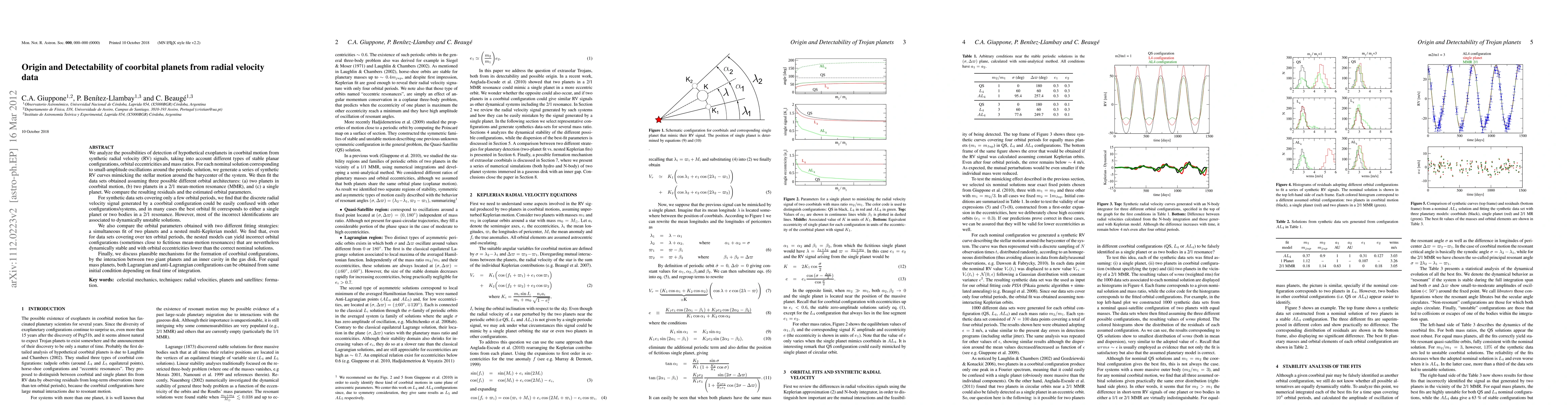 This paper investigates the detectability of coorbital exoplanets via radial velocity data, finding that their signals can be easily confused with other configurations, especially when data spans few orbital periods. It highlights the challenges in distinguishing coorbital planets from single planets or resonant systems, and discusses the formation mechanisms involving interactions between giant planets and gas disks.