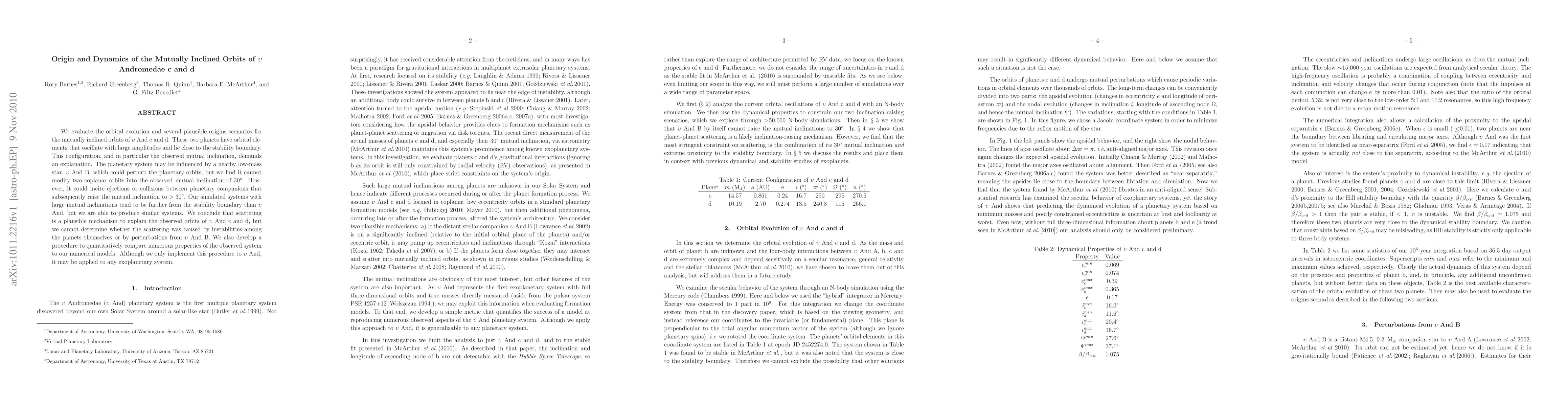 This paper explores the origins and dynamics of the mutually inclined orbits of Upsilon Andromedae c and d, suggesting that scattering events, possibly due to planetary interactions or perturbations from a nearby star, could explain their current configuration. The authors develop a method to compare observed systems with numerical models, applicable to exoplanetary systems in general.