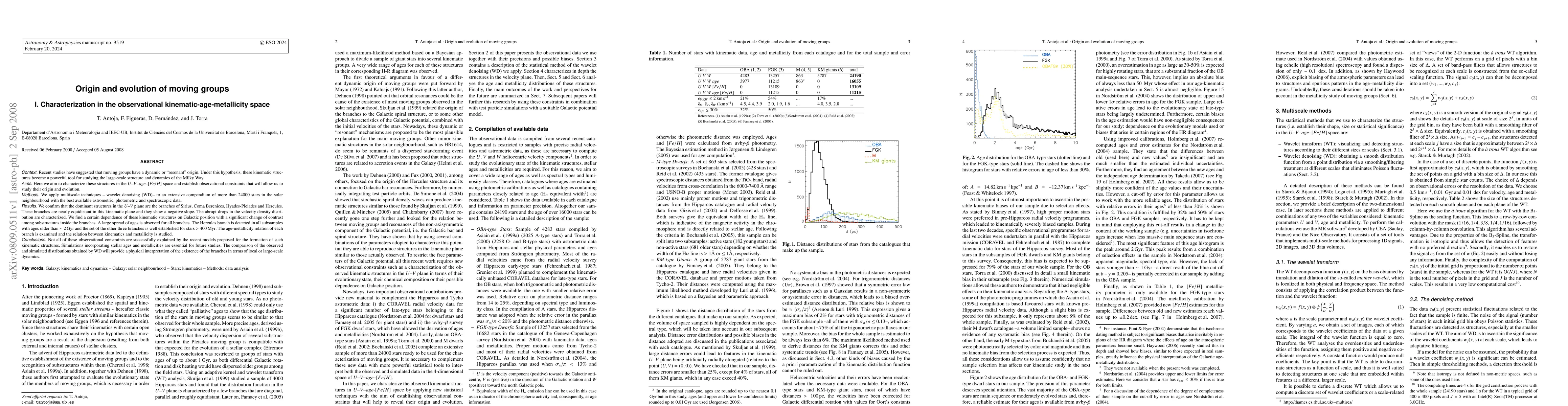 Context. Recent studies have suggested that moving groups have a dynamic or "resonant" origin. Under this hypothesis, these kinematic structures become a powerful tool for studying the large-scale structure and dynamics of the Milky Way. Aims. We aim to characterize these structures in the U-V-age-[Fe/H] space and establish observational constraints that will allow us to study their origin and evolution. Methods. We apply multiscale techniques -wavelet denoising (WD)- to an extensive compendium of more than 24000 stars in the solar neighbourhood with the best available astrometric, photometric and spectroscopic data. Results. We confirm that the dominant structures in the U-V plane are the branches of Sirius, Coma Berenices, Hyades-Pleiades and Hercules, which are nearly equidistant in this kinematic plane and show a negative slope. The abrupt drops in the velocity distribution are characterized. We find a certain dependence of these kinematic structures on Galactic position with a significant change of contrast among substructures inside the branches. A large spread of ages is observed for all branches. The Hercules branch is detected in all subsamples with ages older than ~ 2 Gyr and the set of the other three branches is well established for stars > 400 Myr. The age-metallicity relation of each branch is examined and the relation between kinematics and metallicity is studied. Conclusions. Not all of these observational constraints are successfully explained by the recent models proposed for the formation of such kinematic structures. Simulations incorporating stellar ages and metallicities are essential for future studies. The comparison of the observed and simulated distributions obtained by WD will provide a physical interpretation of the existence of the branches in terms of local or large-scale dynamics. [Abridged]