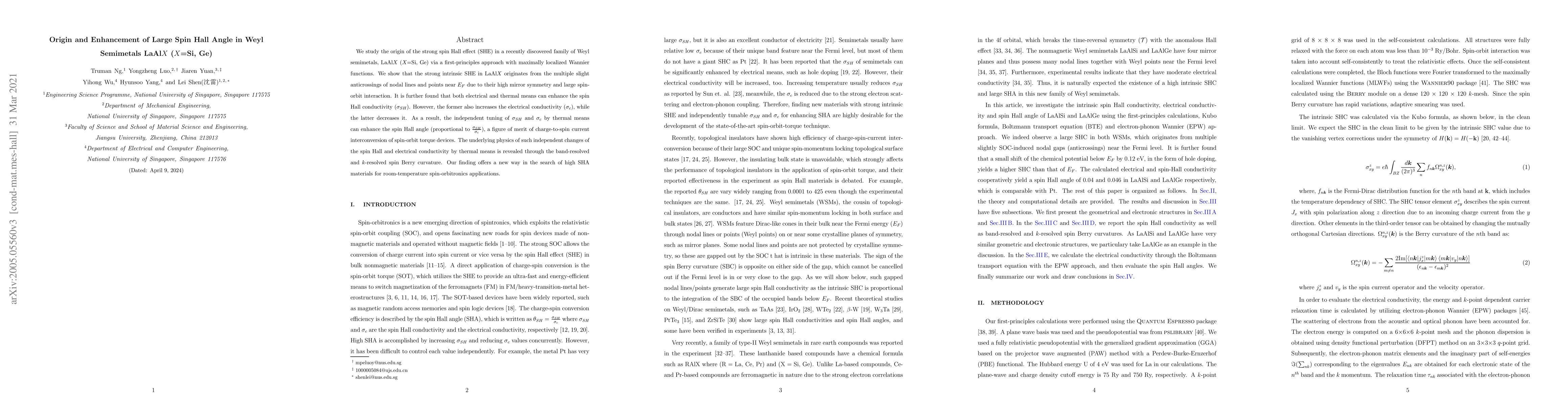 We study the origin of the strong spin Hall effect (SHE) in a recently discovered family of Weyl semimetals, LaAl$X$ ($X$=Si, Ge) via a first-principles approach with maximally localized Wannier functions. We show that the strong intrinsic SHE in LaAl$X$ originates from the multiple slight anticrossings of nodal lines and points near $E_F$ due to their high mirror symmetry and large spin-orbit interaction. It is further found that both electrical and thermal means can enhance the spin Hall conductivity ($\sigma_{SH}$). However, the former also increases the electrical conductivity ($\sigma_{c}$), while the latter decreases it. As a result, the independent tuning of $\sigma_{SH}$ and $\sigma_{c}$ by thermal means can enhance the spin Hall angle (proportional to $\frac{\sigma_{SH}}{\sigma_{c}}$), a figure of merit of charge-to-spin current interconversion of spin-orbit torque devices. The underlying physics of such independent changes of the spin Hall and electrical conductivity by thermal means is revealed through the band-resolved and $k$-resolved spin Berry curvature. Our finding offers a new way in the search of high SHA materials for room-temperature spin-orbitronics applications.