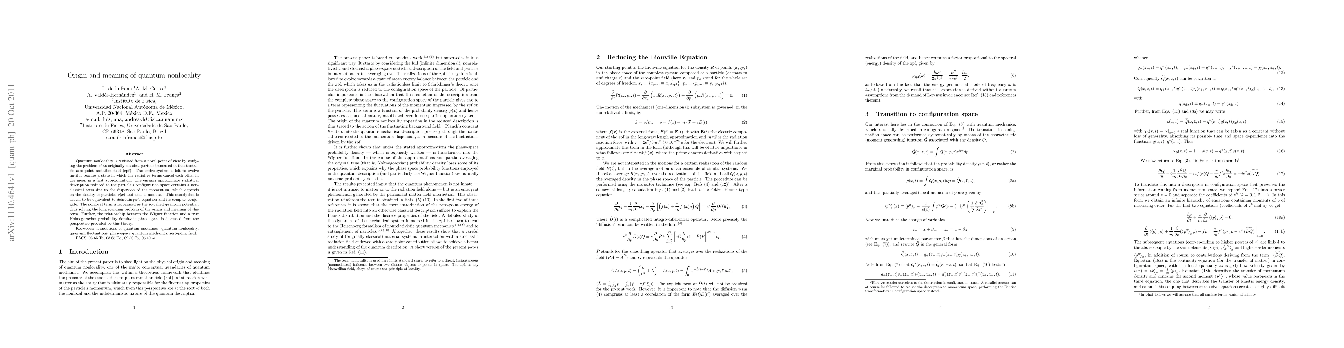 Quantum nonlocality is revisited from a novel point of view by studying the problem of an originally classical particle immersed in the stochastic zero-point radiation field (zpf). The entire system is left to evolve until it reaches a state in which the radiative terms cancel each other in the mean in a first approximation. The ensuing approximate statistical description reduced to the particle's configuration space contains a nonclassical term due to the dispersion of the momentum, which depends on the density of particles {\rho}(x) and thus is nonlocal. This description is shown to be equivalent to Schr\"odinger's equation and its complex conjugate. The nonlocal term is recognized as the so-called quantum potential, thus solving the long standing problem of the origin and meaning of this term. Further, the relationship between the Wigner function and a true Kolmogorovian probability density in phase space is discussed from the perspective provided by this theory.