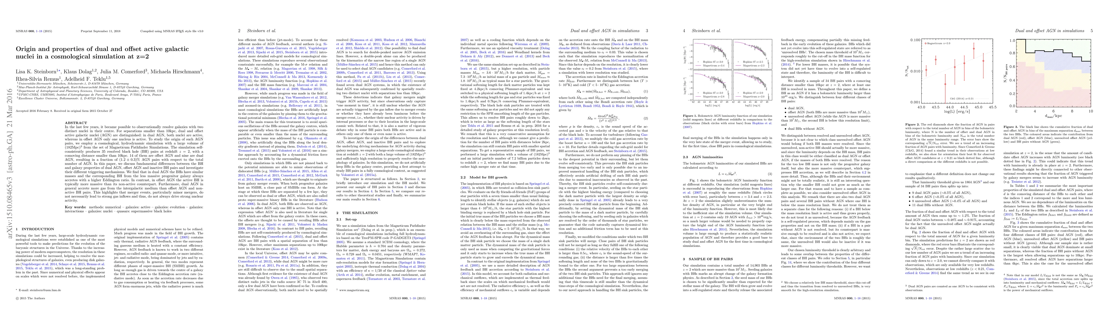 In the last few years, it became possible to observationally resolve galaxies with two distinct nuclei in their centre. For separations smaller than 10kpc, dual and offset active galactic nuclei (AGN) are distinguished: in dual AGN, both nuclei are active, whereas in offset AGN only one nucleus is active. To study the origin of such AGN pairs, we employ a cosmological, hydrodynamic simulation with a large volume of (182Mpc)^3 from the set of Magneticum Pathfinder Simulations. The simulation self-consistently produces 35 resolved black hole (BH) pairs at redshift z=2, with a comoving distance smaller than 10kpc. 14 of them are offset AGN and nine are dual AGN, resulting in a fraction of (1.2 \pm 0.3)% AGN pairs with respect to the total number of AGN. In this paper, we discuss fundamental differences between the BH and galaxy properties of dual AGN, offset AGN and inactive BH pairs and investigate their different triggering mechanisms. We find that in dual AGN the BHs have similar masses and the corresponding BH from the less massive progenitor galaxy always accretes with a higher Eddington ratio. In contrast, in offset AGN the active BH is typically more massive than its non-active counterpart. Furthermore, dual AGN in general accrete more gas from the intergalactic medium than offset AGN and non-active BH pairs. This highlights that merger events, particularly minor mergers, do not necessarily lead to strong gas inflows and thus, do not always drive strong nuclear activity.