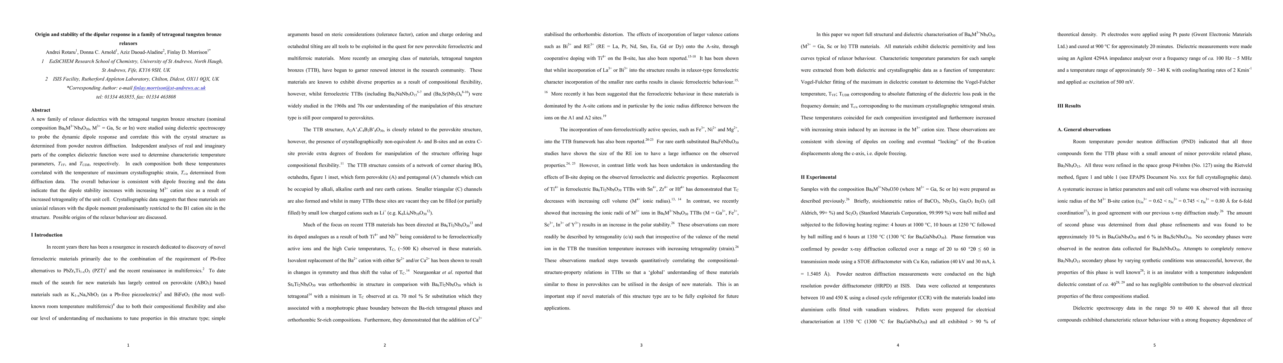 A new family of relaxor dielectrics with tetragonal tungsten bronze structure exhibit dipole freezing at specific temperatures, correlated with crystallographic strain, and dipole stability increases with M3+ cation size.