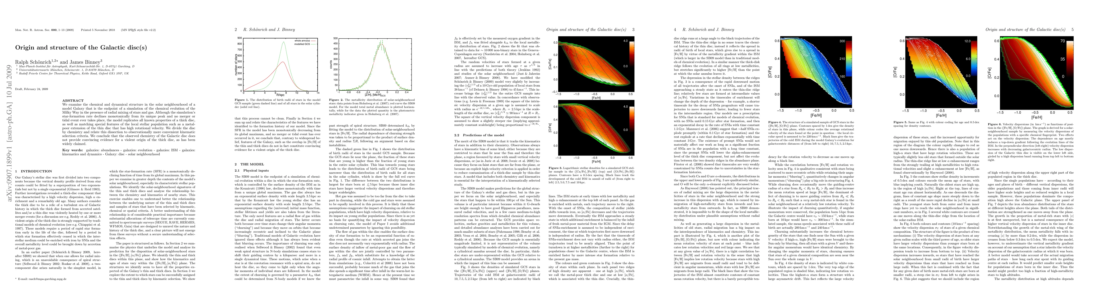 We examine the chemical and dynamical structure in the solar neighbourhood of a model Galaxy that is the endpoint of a simulation of the chemical evolution of the Milky Way in the presence of radial mixing of stars and gas. Although the simulation's star-formation rate declines monotonically from its unique peak and no merger or tidal event ever takes place, the model replicates all known properties of a thick disc, as well as matching special features of the local stellar population such as a metal-poor extension of the thin disc that has high rotational velocity. We divide the disc by chemistry and relate this dissection to observationally more convenient kinematic selection criteria. We conclude that the observed chemistry of the Galactic disc does not provide convincing evidence for a violent origin of the thick disc, as has been widely claimed.