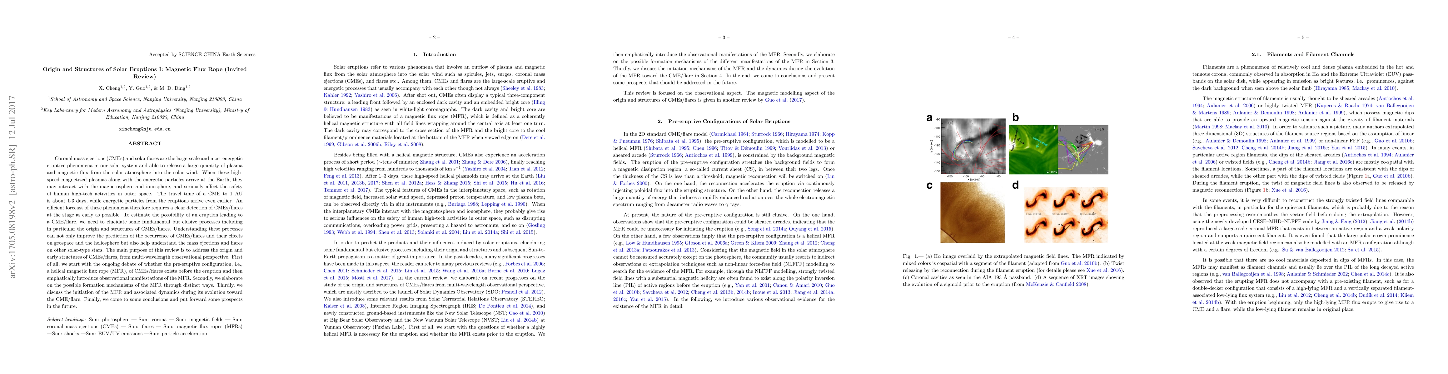 Coronal mass ejections (CMEs) and solar flares are the large-scale and most energetic eruptive phenomena in our solar system and able to release a large quantity of plasma and magnetic flux from the solar atmosphere into the solar wind. When these high-speed magnetized plasmas along with the energetic particles arrive at the Earth, they may interact with the magnetosphere and ionosphere, and seriously affect the safety of human high-tech activities in outer space. The travel time of a CME to 1 AU is about 1-3 days, while energetic particles from the eruptions arrive even earlier. An efficient forecast of these phenomena therefore requires a clear detection of CMEs/flares at the stage as early as possible. To estimate the possibility of an eruption leading to a CME/flare, we need to elucidate some fundamental but elusive processes including in particular the origin and structures of CMEs/flares. Understanding these processes can not only improve the prediction of the occurrence of CMEs/flares and their effects on geospace and the heliosphere but also help understand the mass ejections and flares on other solar-type stars. The main purpose of this review is to address the origin and early structures of CMEs/flares, from multi-wavelength observational perspective. First of all, we start with the ongoing debate of whether the pre-eruptive configuration, i.e., a helical magnetic flux rope (MFR), of CMEs/flares exists before the eruption and then emphatically introduce observational manifestations of the MFR. Secondly, we elaborate on the possible formation mechanisms of the MFR through distinct ways. Thirdly, we discuss the initiation of the MFR and associated dynamics during its evolution toward the CME/flare. Finally, we come to some conclusions and put forward some prospects in the future.