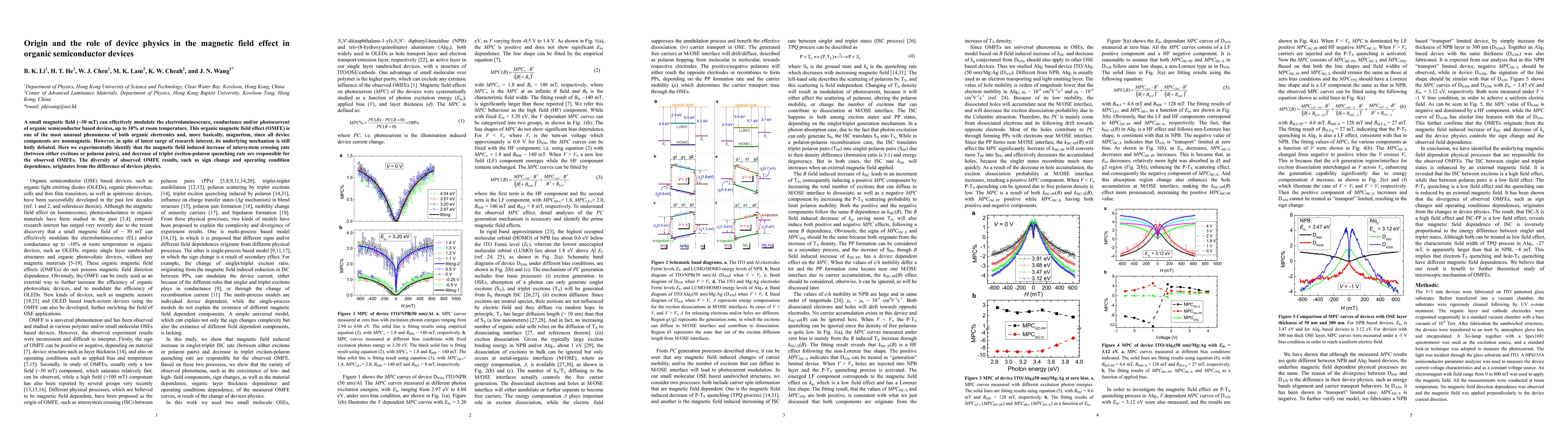 Researchers discovered that a small magnetic field can modulate organic semiconductor devices, increasing their efficiency up to 10%, by altering the rate of intersystem crossing between excitons and polaron pairs.