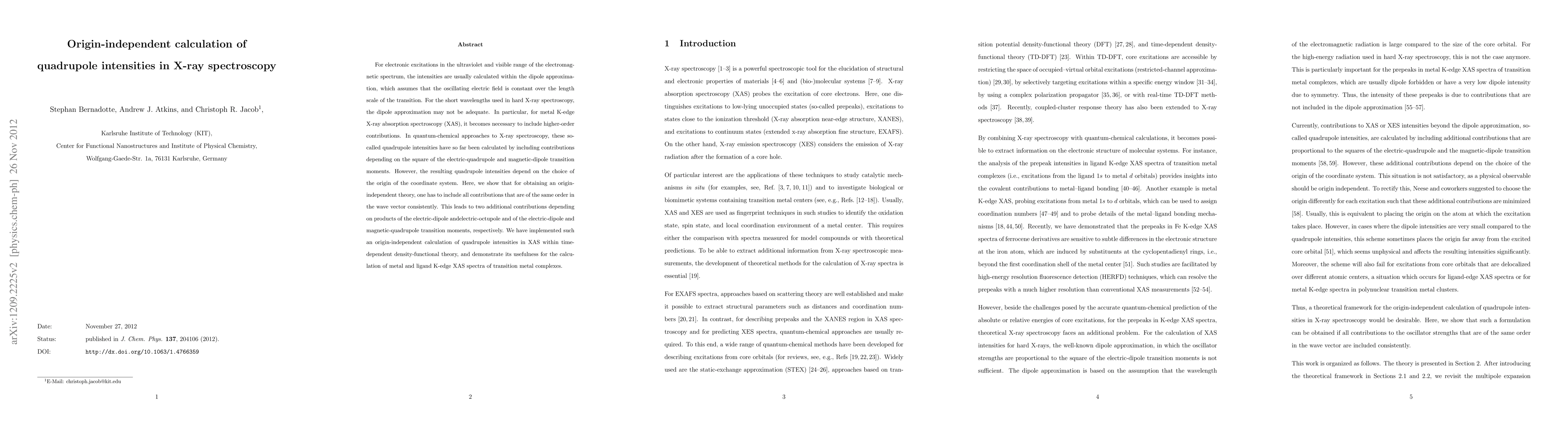 This paper presents a method for calculating origin-independent quadrupole intensities in X-ray spectroscopy, addressing the breakdown of the dipole approximation at short wavelengths. It introduces additional contributions from electric-dipole and electric-octupole, as well as electric-dipole and magnetic-quadrupole transition moments, ensuring consistent calculations independent of the coordinate system's origin.