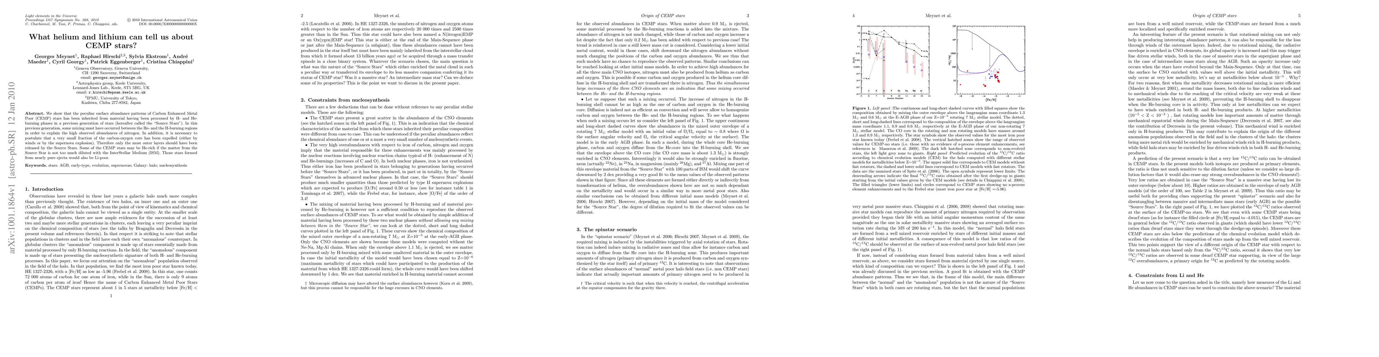 This paper proposes that CEMP stars' unique surface abundances originate from material processed by H- and He-burning in previous stars, necessitating mixing between burning regions and a small expulsion of the carbon-oxygen core. Some CEMP stars may be He-rich and Li-poor depending on the dilution of Source Star ejecta with the interstellar medium.