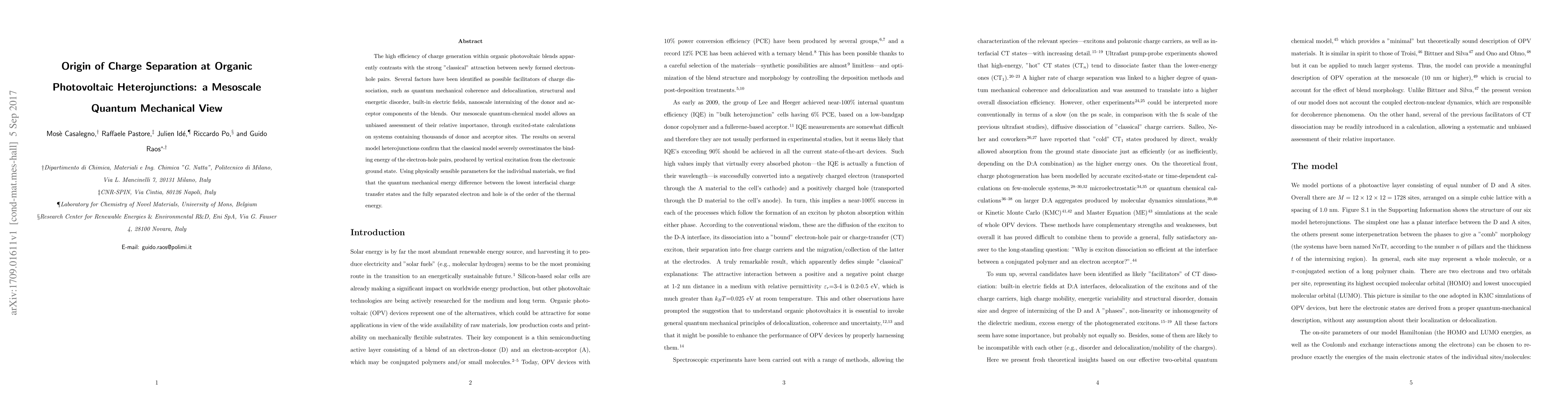 A mesoscale quantum-chemical model shows that charge dissociation in organic photovoltaic blends is facilitated by quantum mechanical effects rather than classical attraction, allowing for more efficient charge generation. The findings suggest that thermal energy is sufficient to overcome the binding energy of electron-hole pairs.