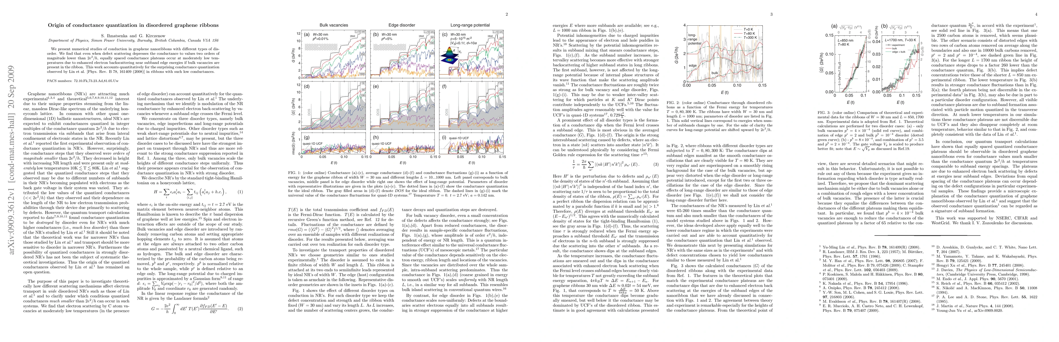 This study investigates the conductance quantization in disordered graphene nanoribbons, revealing that despite significant defect scattering, conductance plateaus still emerge due to enhanced electron backscattering near subband edge energies, explaining the observed quantization even at low conductance levels.