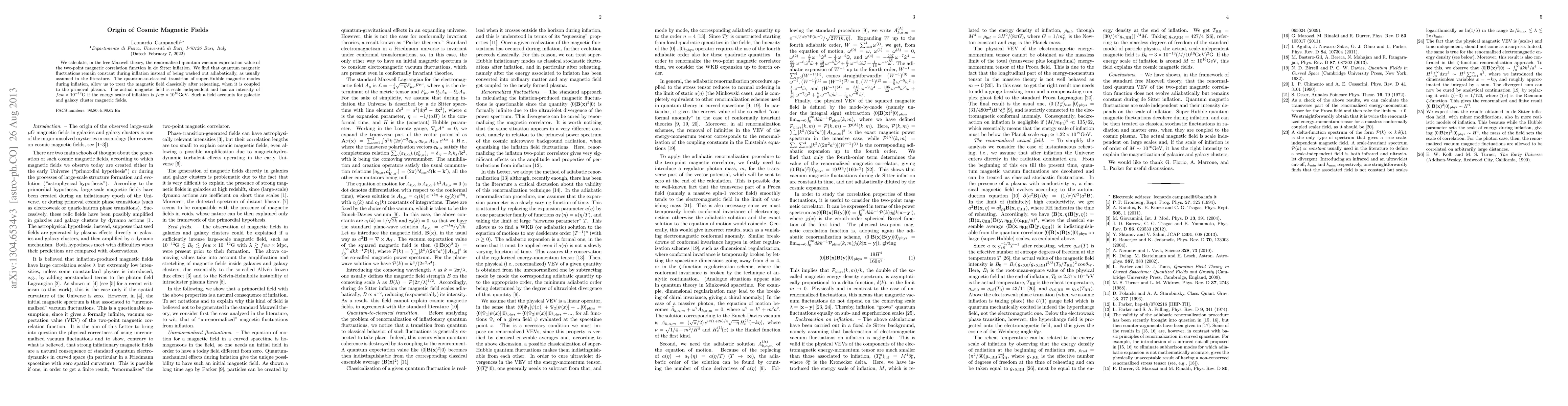 We calculate, in the free Maxwell theory, the renormalized quantum vacuum expectation value of the two-point magnetic correlation function in de Sitter inflation. We find that quantum magnetic fluctuations remain constant during inflation instead of being washed out adiabatically, as usually assumed in the literature. The quantum-to-classical transition of super-Hubble magnetic modes during inflation, allow us to treat the magnetic field classically after reheating, when it is coupled to the primeval plasma. The actual magnetic field is scale independent and has an intensity of few \times 10^(-12) G if the energy scale of inflation is few \times 10^(16) GeV. Such a field accounts for galactic and galaxy cluster magnetic fields.