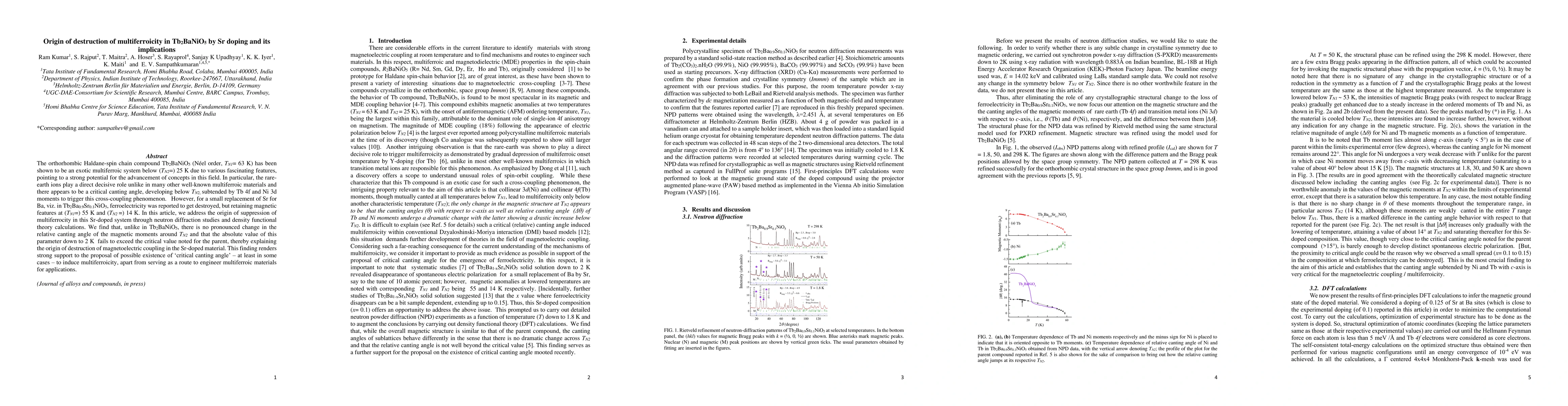 The orthorhombic Haldane spin chain compound Tb2BaNiO5 (Neel order, TN1= 63 K) has been shown to be an exotic multiferroic system below (TN2) 25 K due to various fascinating features, pointing to a strong potential for the advancement of concepts in this field. In particular, the rare-earth ions play a direct decisive role unlike in many other well known multiferroic materials and there appears to be a critical canting angle, developing below TN2, subtended by Tb 4f and Ni 3d moments to trigger this cross coupling phenomenon. However, for a small replacement of Sr for Ba, viz. in Tb2Ba0.9Sr0.1NiO5, ferroelectricity was reported to get destroyed, but retaining magnetic features at (TN1) 55 K and (TN2) 14 K. In this article, we address the origin of suppression of multiferrocity in this Sr doped system through neutron diffraction studies and density functional theory calculations. We find that, unlike in Tb2BaNiO5, there is no pronounced change in the relative canting angle of the magnetic moments around TN2 and that the absolute value of this parameter down to 2 K fails to exceed the critical value noted for the parent, thereby explaining the origin of destruction of magnetoelectric coupling in the Sr doped material. This finding renders strong support to the proposal of possible existence of critical canting angle, at least in some cases, to induce multiferroicity, apart from serving as a route to engineer multiferroic materials for applications.