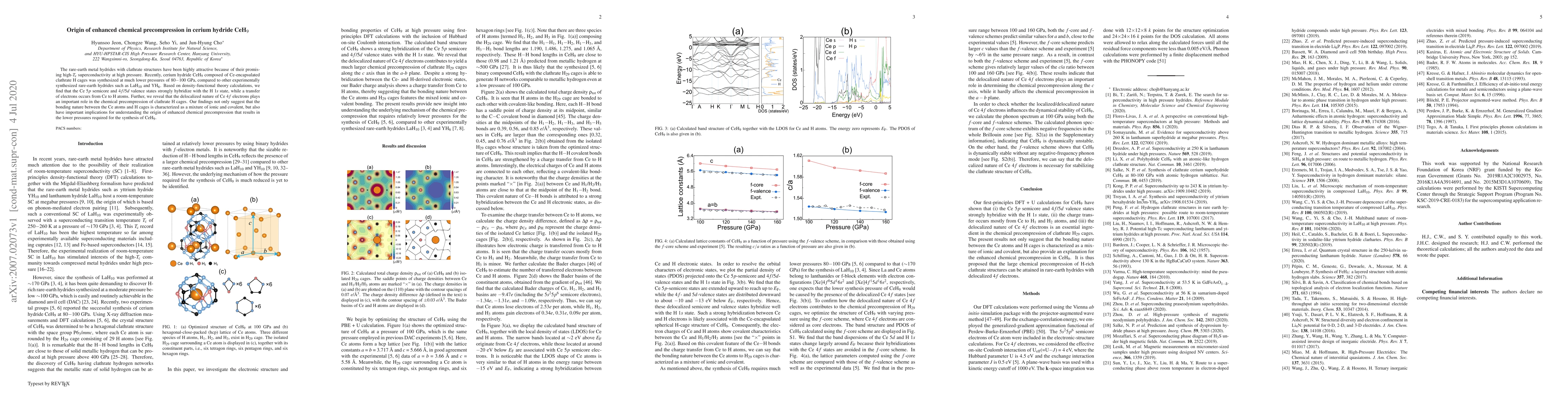 This paper investigates the synthesis of cerium hydride CeH$_9$ at lower pressures than other rare-earth hydrides, attributing its enhanced chemical precompression to strong hybridizing Ce 4$f$/5$d$ and H 1$s$ states, and delocalized Ce 4$f$ electrons. The findings suggest a mixed ionic-covalent bonding nature and lower synthesis pressure requirements.