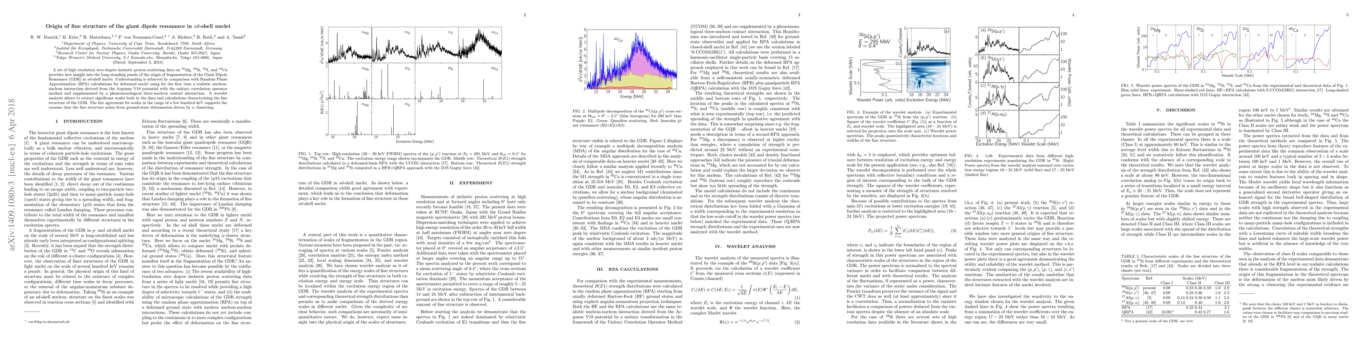 A set of high resolution zero-degree inelastic proton scattering data on 24Mg, 28Si, 32S, and 40Ca provides new insight into the long-standing puzzle of the origin of fragmentation of the Giant Dipole Resonance (GDR) in sd-shell nuclei. Understanding is provided by state-of-the-art theoretical Random Phase Approximation (RPA) calculatios for deformed nuclei using for the first time a realistic nucleon-nucleon interaction derived from the Argonne V18 potential with the unitary correlation operator method and supplemented by a phenomenological three-nucleon contact interaction. A wavelet analysis allows to extract significant scales both in the data and calculations characterizing the fine structure of the GDR. The fair agreement supports that the fine structure arises from ground-state deformation driven by alpha clustering.