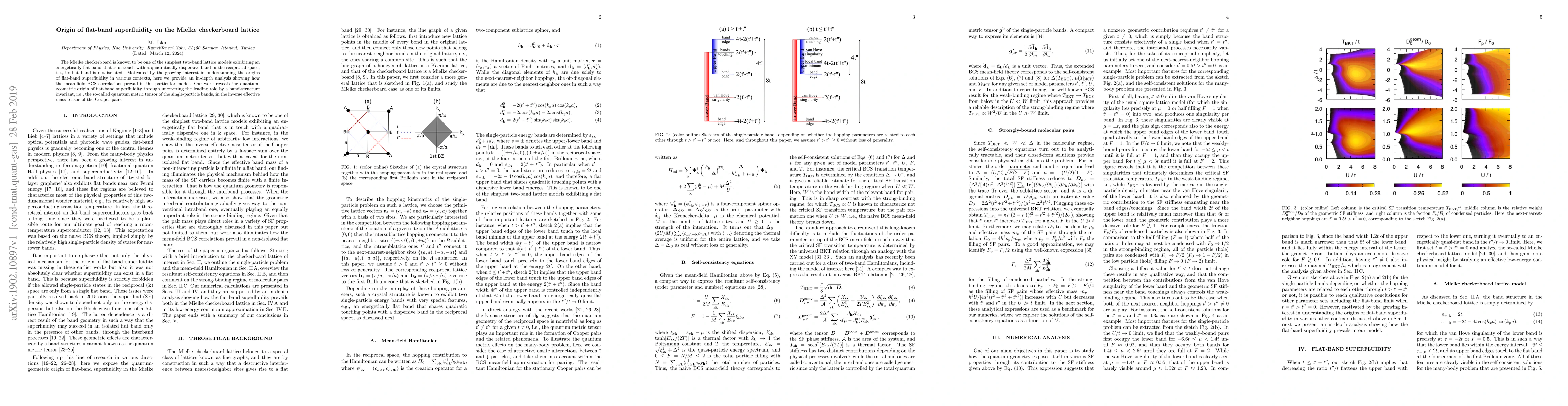 Researchers study flat-band superfluidity on the Mielke checkerboard lattice, finding that mean-field BCS correlations arise from a band-structure invariant called the quantum metric tensor.