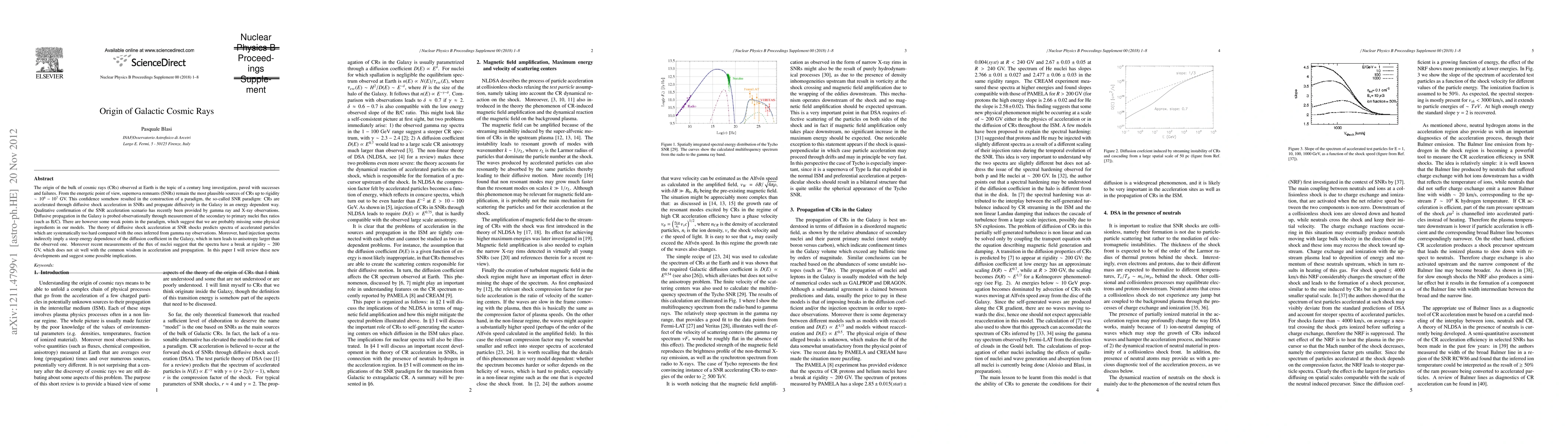 The origin of galactic cosmic rays may not be explained by the SNR paradigm, as recent observations suggest a break in spectra at rigidity 200 GV, contradicting predictions of diffusive shock acceleration.