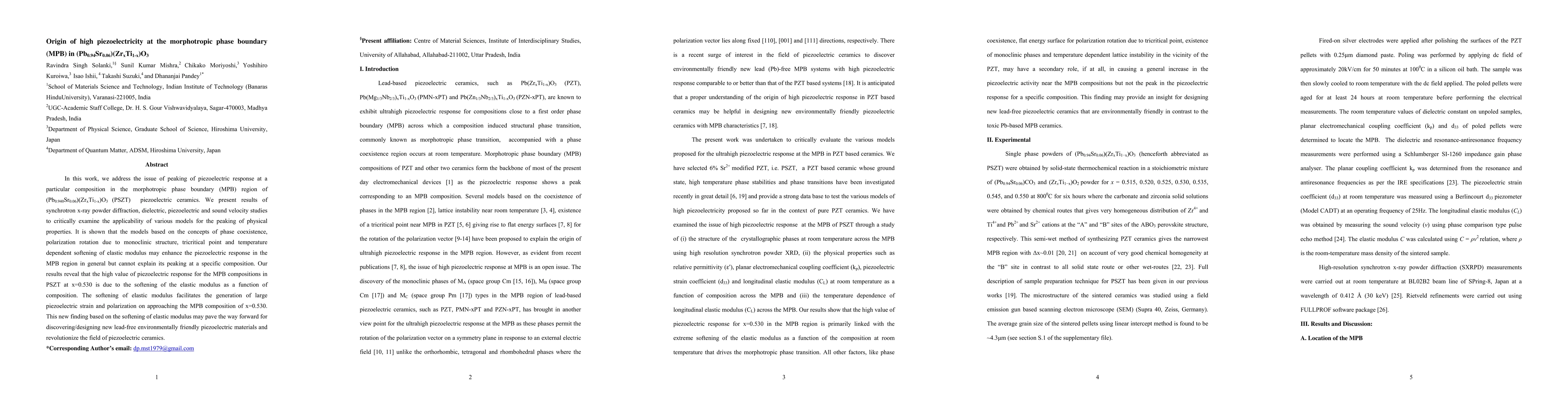 This study investigates the origin of high piezoelectricity at the morphotropic phase boundary (MPB) in PSZT, revealing that the peak piezoelectric response at x=0.530 is due to the softening of the elastic modulus, which facilitates large piezoelectric strain and polarization. This insight could lead to the development of new lead-free piezoelectric materials.