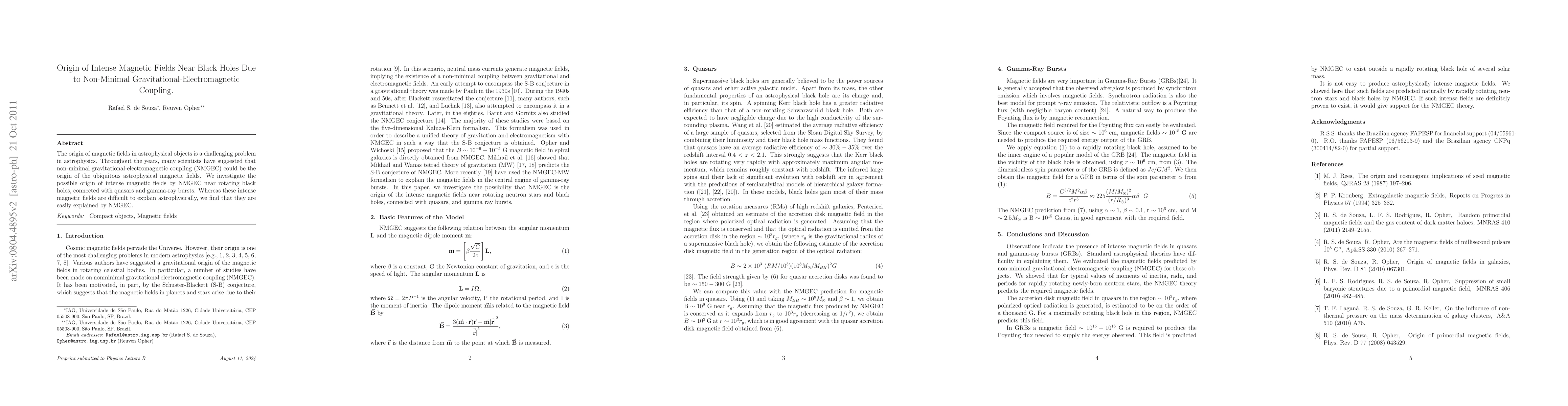 This paper explores the potential origin of intense magnetic fields near black holes and rotating neutron stars, suggesting that non-minimal gravitational-electromagnetic coupling (NMGEC) could be a key mechanism. The study finds that NMGEC provides a plausible explanation for the observed magnetic fields in astrophysical objects like magnetars, quasars, and gamma-ray bursts.