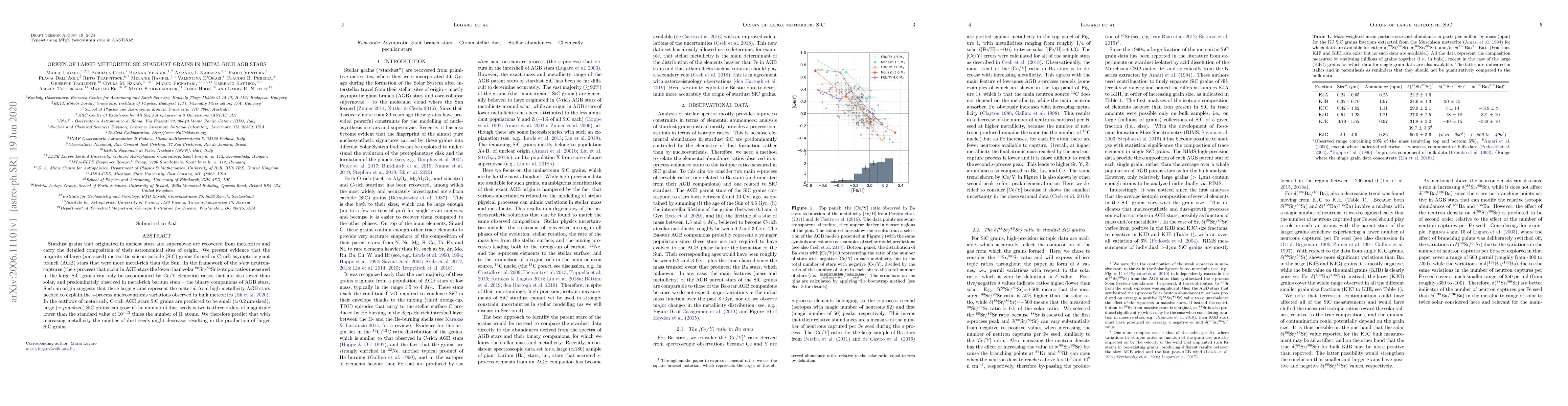 This paper presents evidence that large meteoritic silicon carbide (SiC) grains originate from metal-rich C-rich asymptotic giant branch (AGB) stars, rather than typical AGB stars. The study suggests that lower-than-solar isotopic ratios in these grains indicate they formed in high-metallicity environments, consistent with the binary companions of AGB stars.