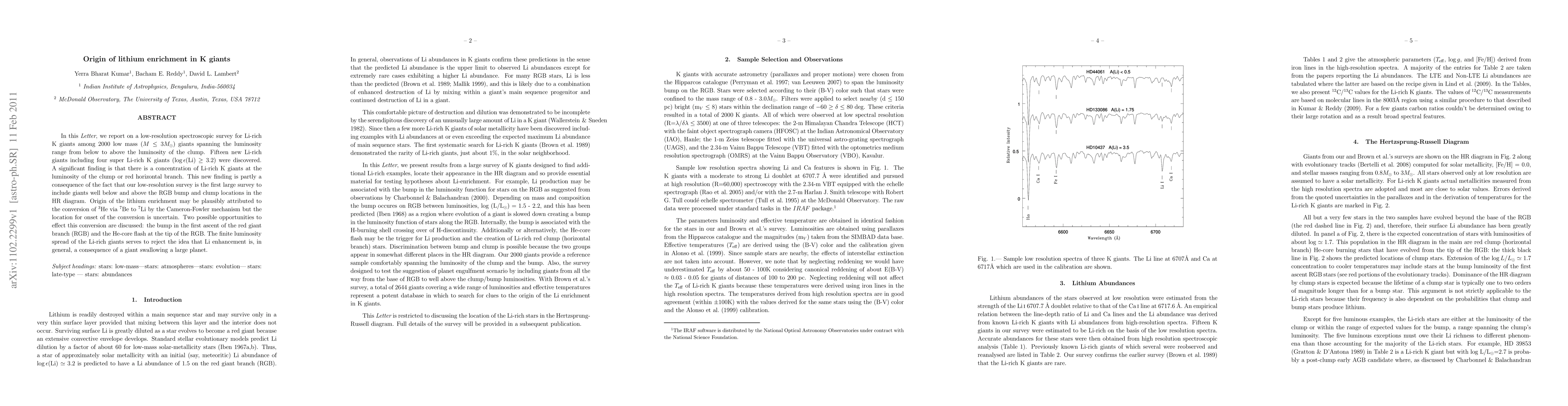 This study identifies 15 new Li-rich K giants, including four super Li-rich stars, among 2000 low-mass giants, revealing a concentration of these stars at the luminosity of the clump or red horizontal branch. The origin of lithium enrichment is tentatively attributed to the Cameron-Fowler mechanism, but the exact onset location remains uncertain.