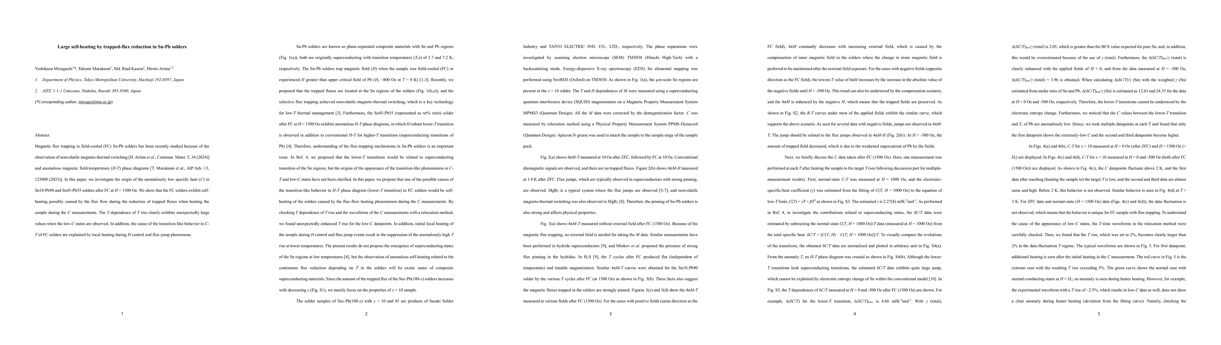 This study investigates the anomalously low specific heat in Sn-Pb solders after field cooling, revealing self-heating due to trapped magnetic flux reduction. The observed large temperature rise and transition-like specific heat behavior are attributed to local heating and flux-jump phenomena.