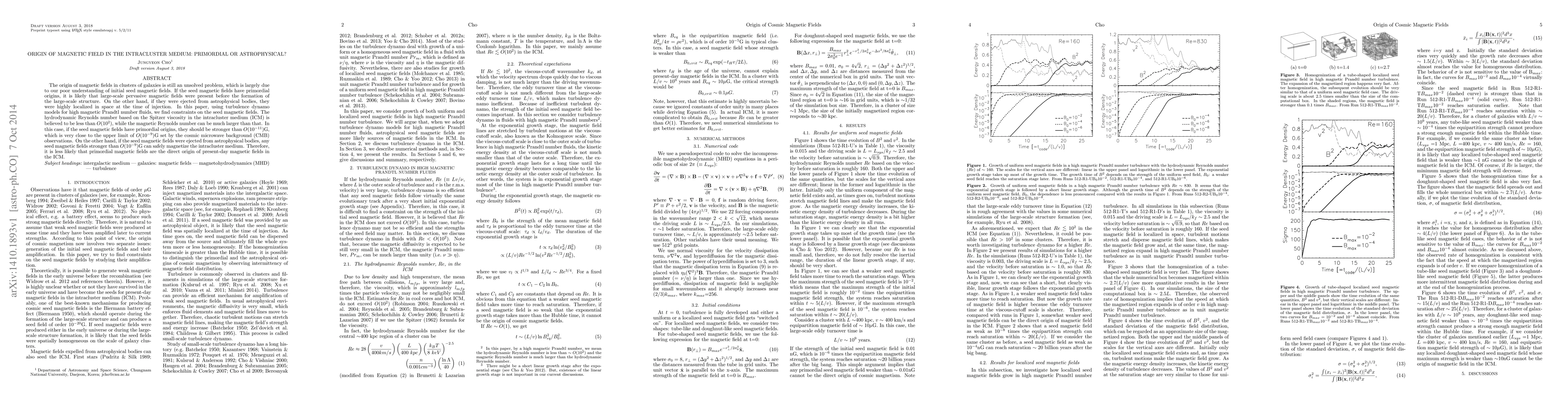 This paper investigates whether magnetic fields in clusters of galaxies have primordial or astrophysical origins, concluding that the presence of strong primordial seed magnetic fields is unlikely given current observational constraints, favoring instead the hypothesis that magnetic fields are generated by astrophysical processes.